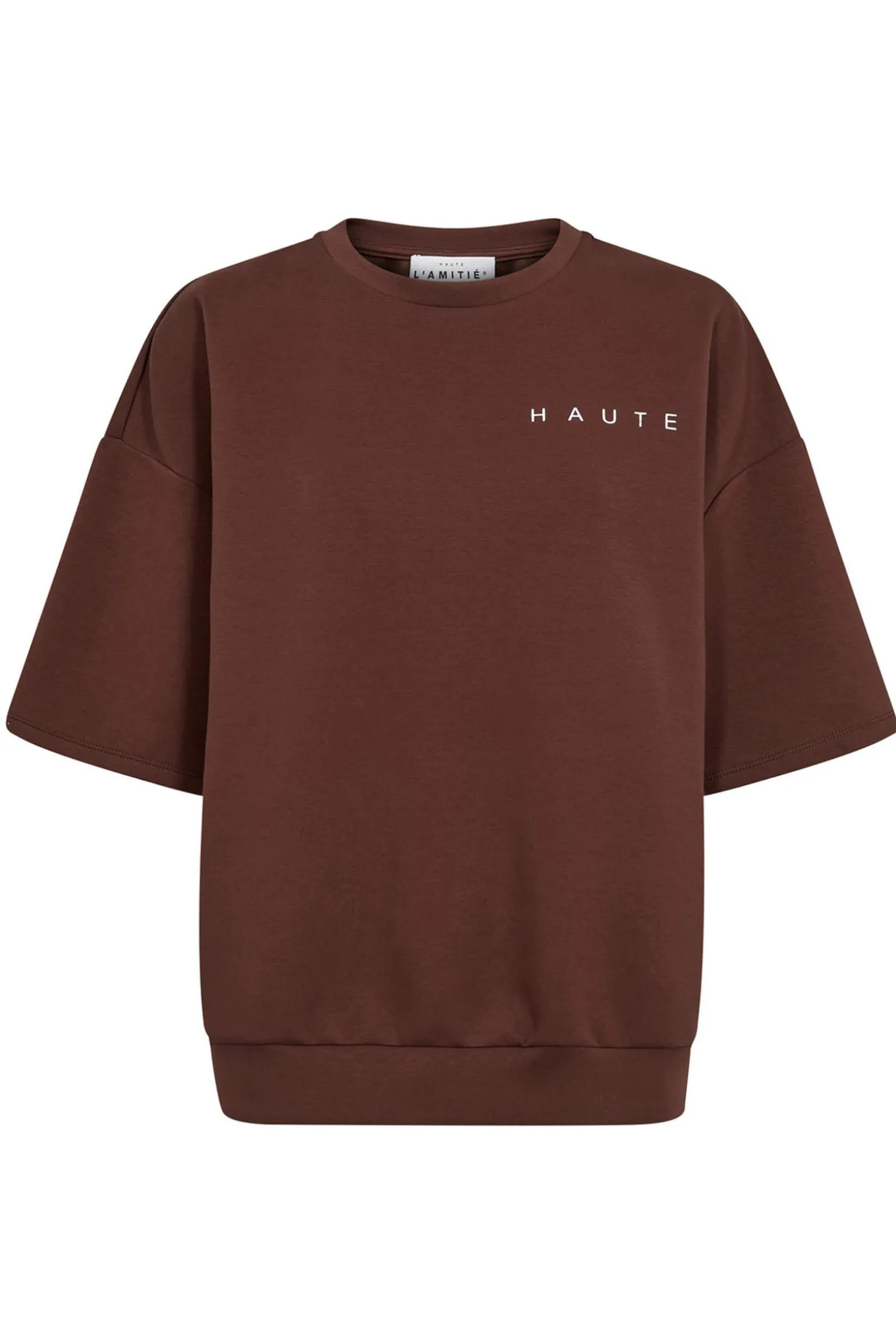 Haute L’Amitie præsenterer denne lækre moccafarvede sweatshirt, som er lavet af en blanding af bomuld, polyester og elastan. Perfekt til både hverdag og afslapning.