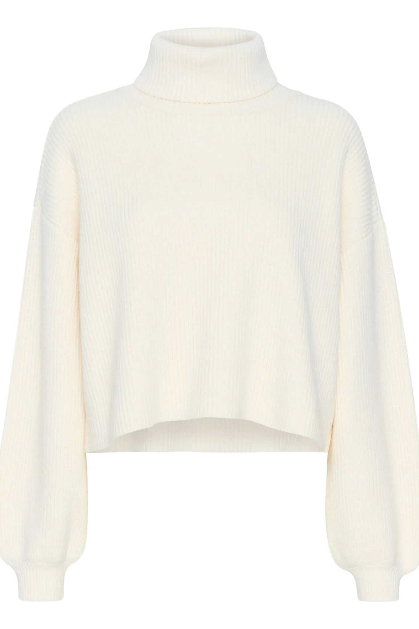 OBS! Fjernlager. Levering kan blive forlænget med 2-3 dage, hvis varen ikke findes i vores butik lige nu.Lækker strik fra Gestuz med lange pufærmer, tætsiddende manchetter og rullekrave i halsen.