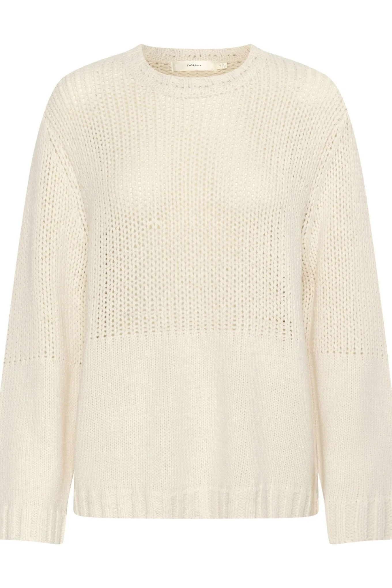 OBS! Fjernlager. Levering kan blive forlænget med 2-3 dage, hvis varen ikke findes i vores butik lige nu.Lækker oversized strik fra InWear med lange ærmer, rund hals og et fint hullet mønster.