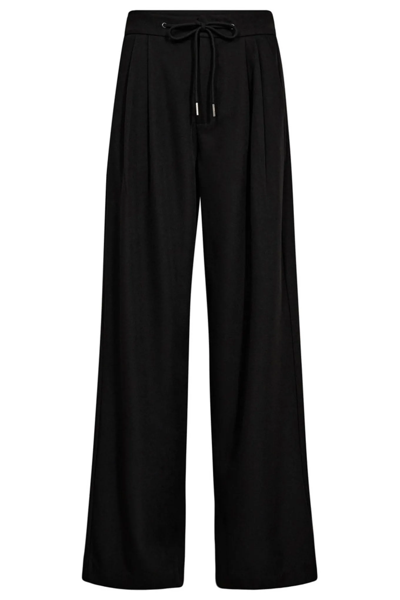 OBS! Fjernlager. Levering kan blive forlænget med 2-3 dage, hvis varen ikke findes i vores butik lige nu.Flotte bukser fra Haute L’Amitié med lidt vidde i benene, en bred elastikkant med bindesnor i taljen og super fine læg i fronten.