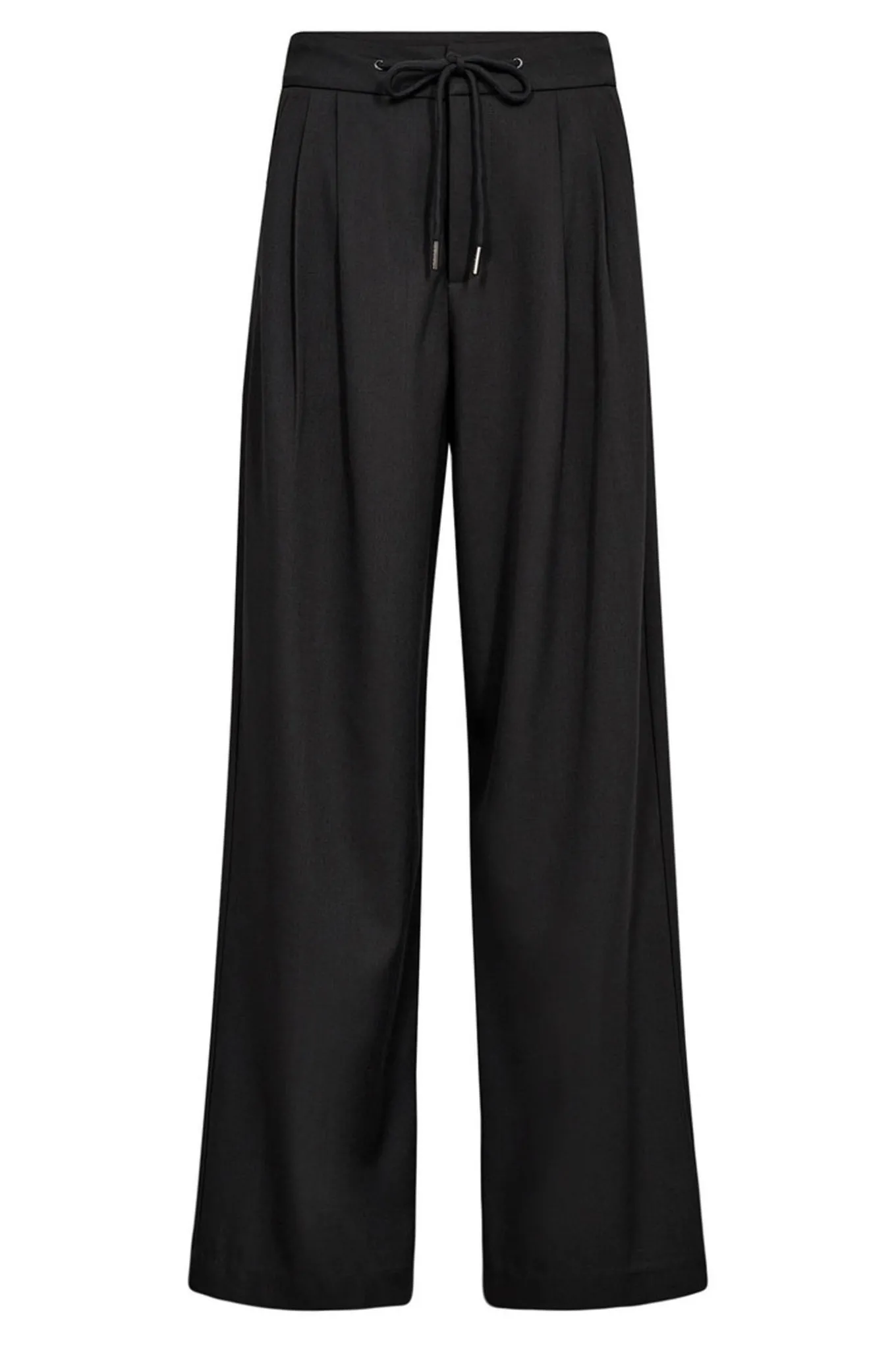OBS! Fjernlager. Levering kan blive forlænget med 2-3 dage, hvis varen ikke findes i vores butik lige nu.Flotte bukser fra Haute L’Amitié med lidt vidde i benene, en bred elastikkant med bindesnor i taljen og super fine læg i fronten.