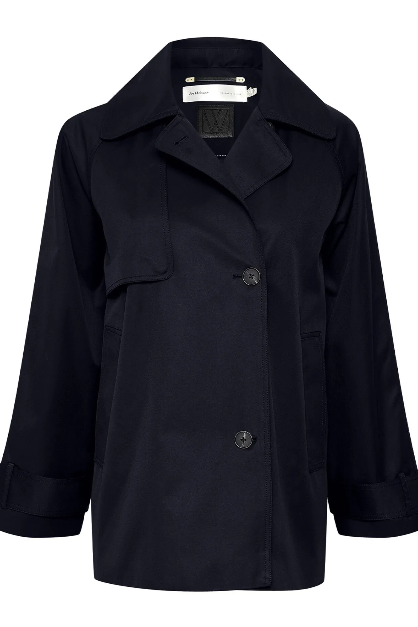 - Smart jakke fra InWear med lange ærmer, en bred skjortekrave i halsen og et cool panel over det ene bryst der giver det enkle udtryk et lille twist. Jakken har også stiklommer, remme omkring ærmerne og knaplukning i fronten.