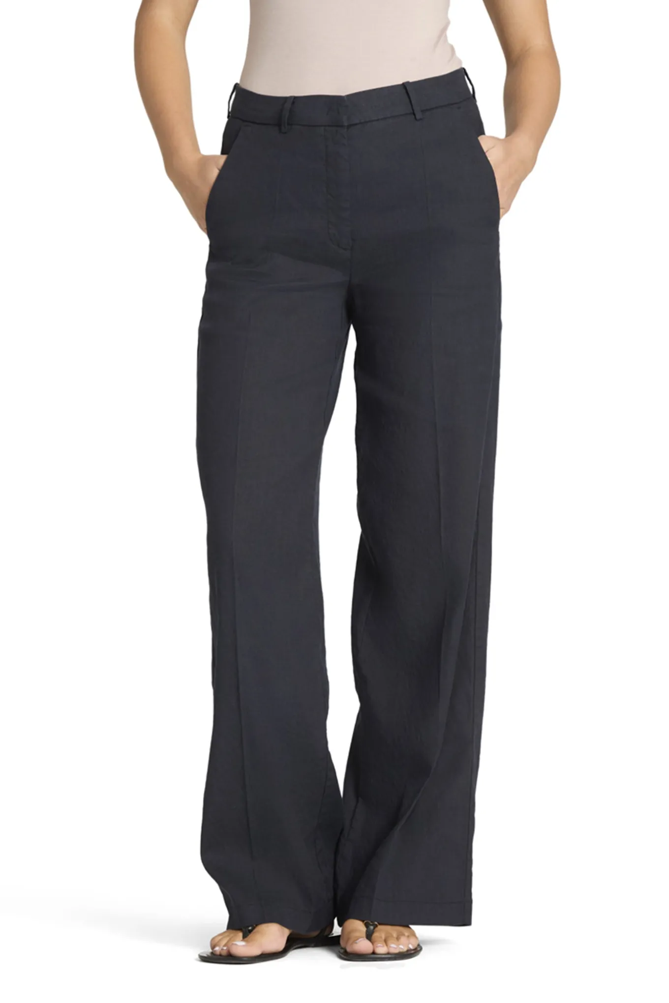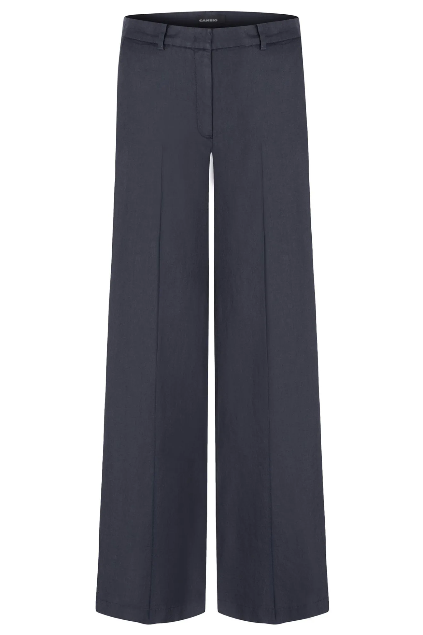 Disse bukser fra CAMBIO er perfekte til enhver lejlighed. Det mørke navy materiale af 65% hør, 34% bomuld og 1% elastan giver både komfort og stil til dit outfit.