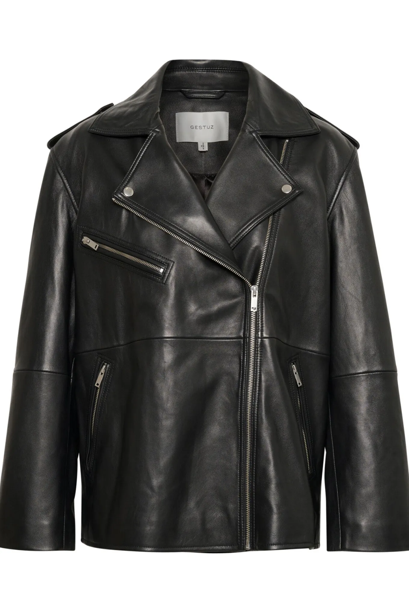 OBS! Fjernlager. Levering kan blive forlænget med 2-3 dage, hvis varen ikke findes i vores butik lige nu.Cool skindjakke fra Gestuz med et oversized snit, lange ærmer og super flotte detaljer.