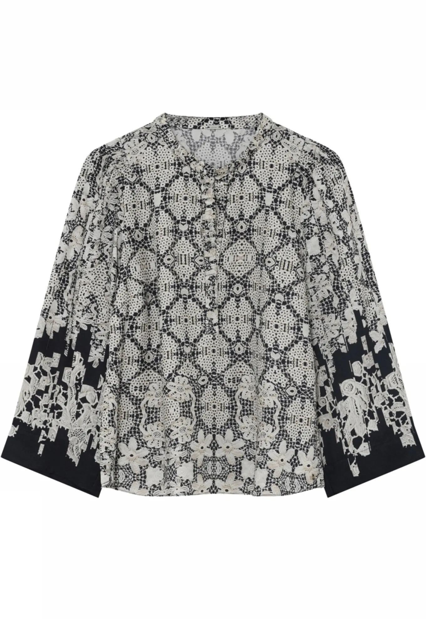 - Flot skjortebluse fra Gustav med ¾ lange og brede ærmer, kinakrave i halsen og et super fint print.