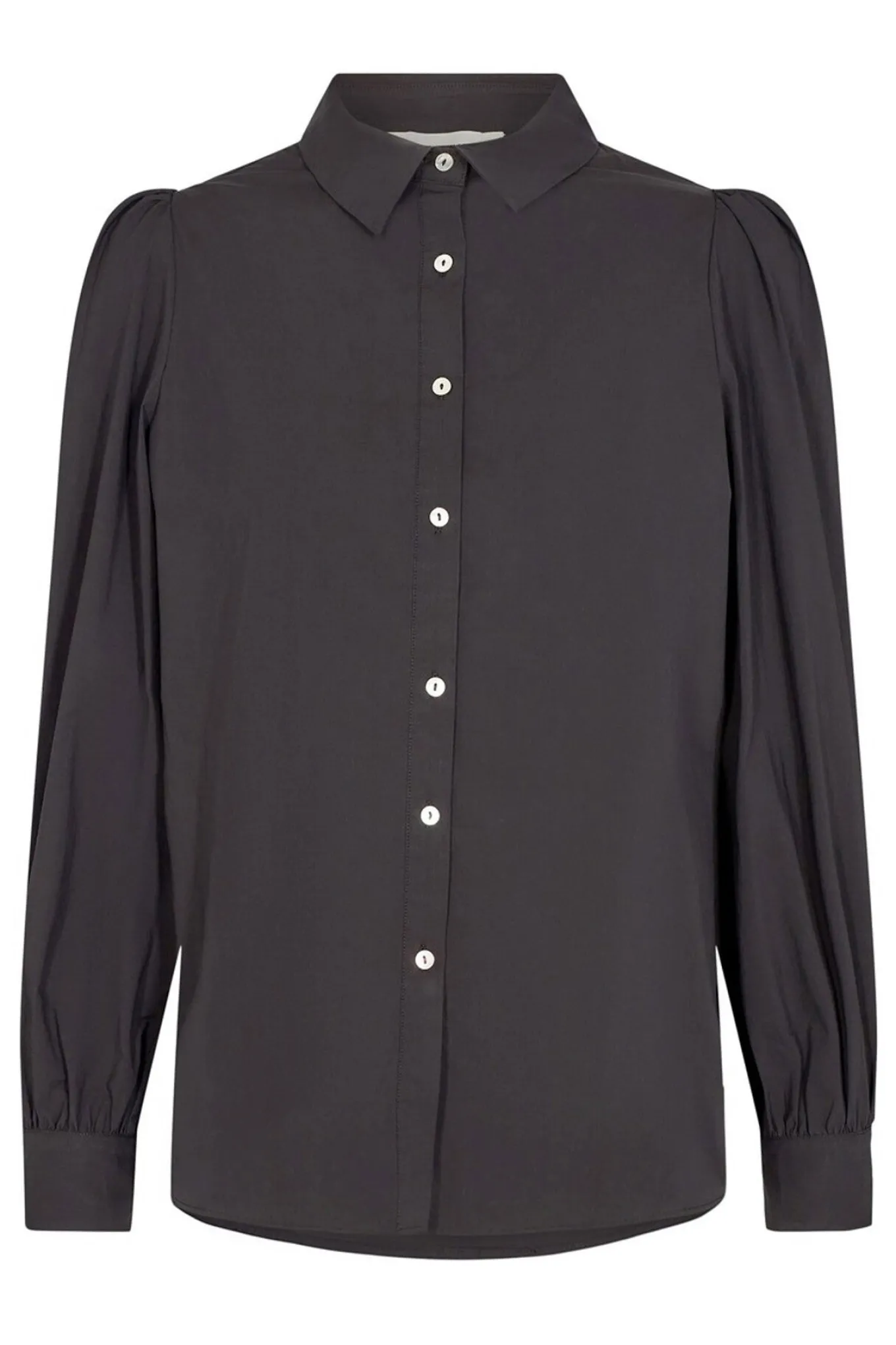 - OBS! Fjernlager. Levering kan blive forlænget med 2-3 dage, hvis varen ikke findes i vores butik lige nu.Elegant og feminin skjorte fra Sofie Schnoor med lange ærmer, krave i halsen og knaplukning langs fronten.