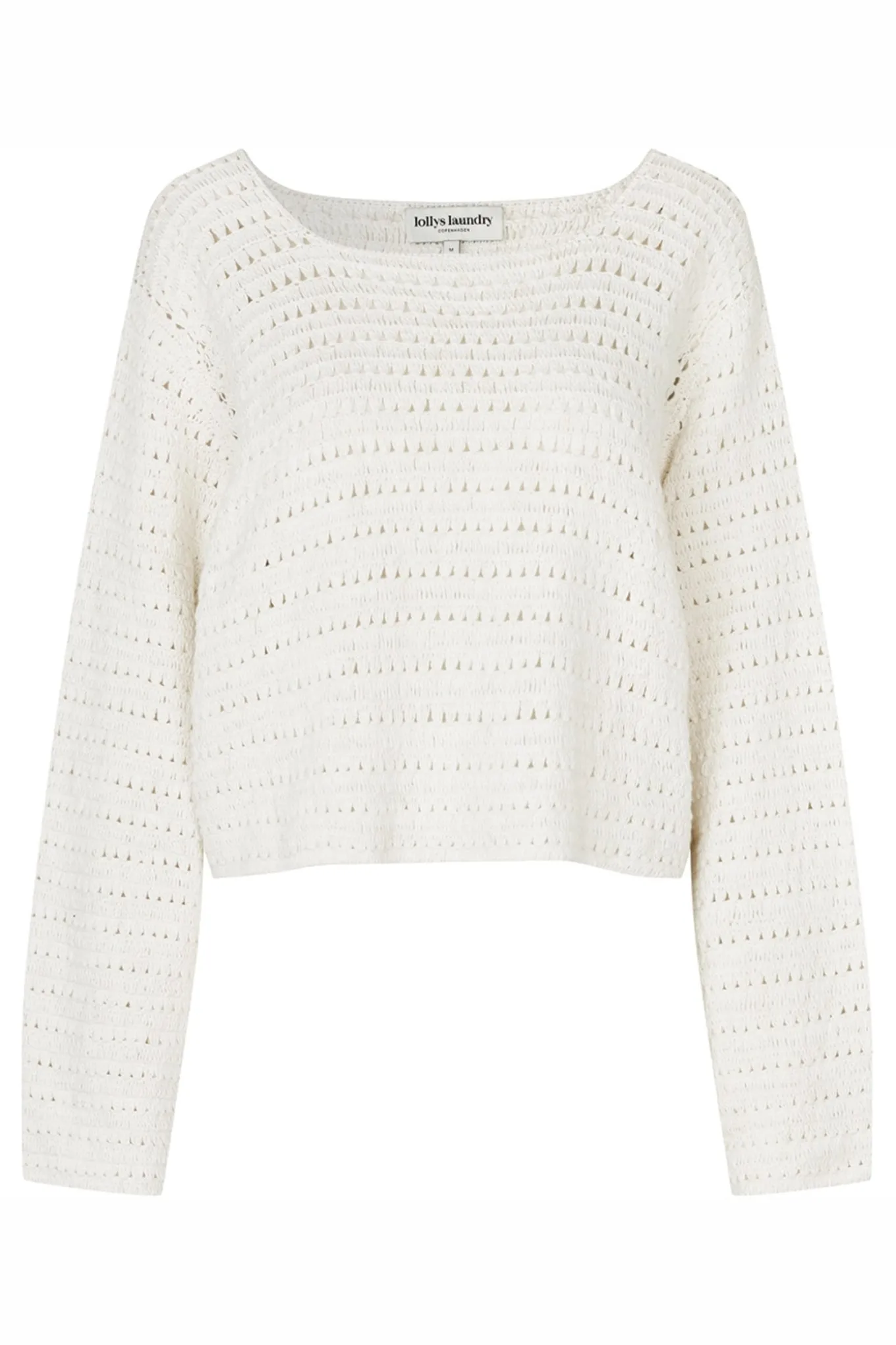 Denne striktrøje i 100% bomuld fra Lollys Laundry i farven ’02 Creme’ er perfekt til enhver lejlighed. Den er både komfortabel og stilfuld, og kan styles på utallige måder.