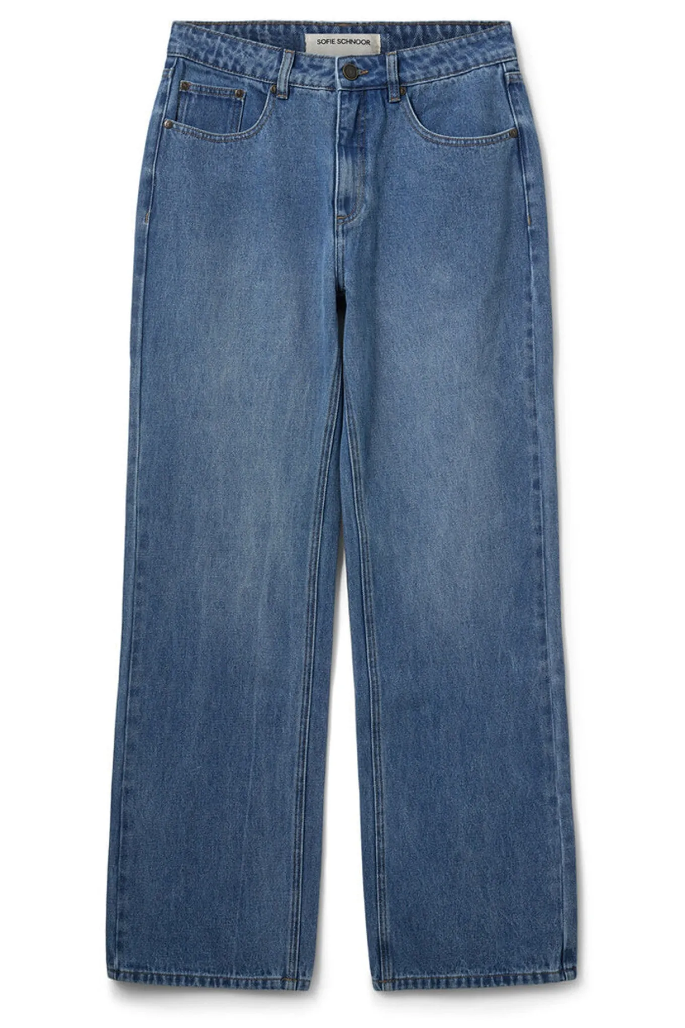 - OBS! Fjernlager. Levering kan blive forlænget med 2-3 dage, hvis varen ikke findes i vores butik lige nu.Smarte jeans fra Sofie Schnoor med et helt klassisk udtryk, en flot blå vask og en afslappet silhuet.