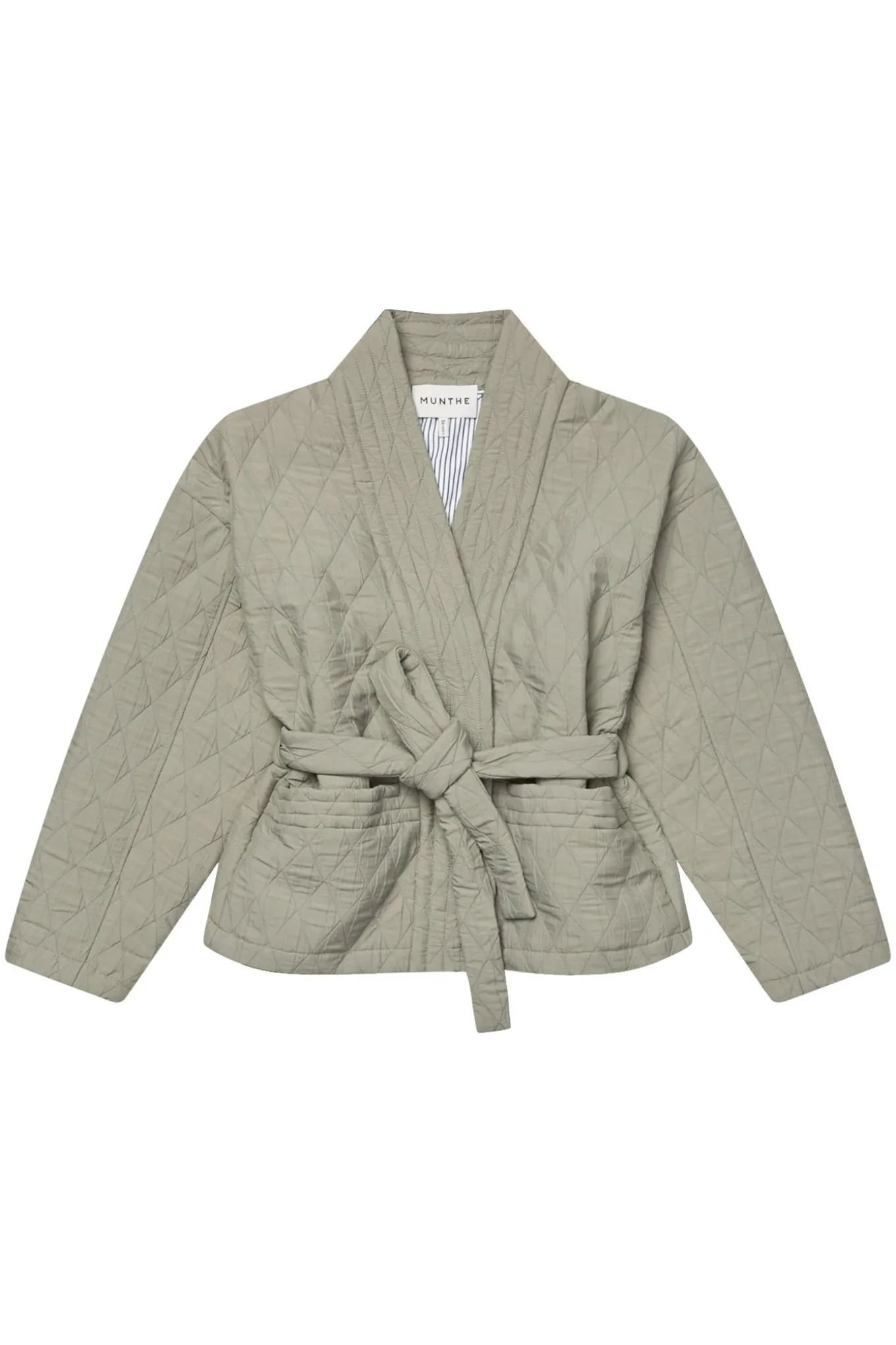 OBS! Fjernlager. Levering kan blive forlænget med 2-3 dage, hvis varen ikke findes i vores butik lige nu.Elegant quiltet jakke fra Munthe med et smukt taljebælte og forlommer. Jakken har en elegant dobbeltknappet lukning og en afslappet silhuet.