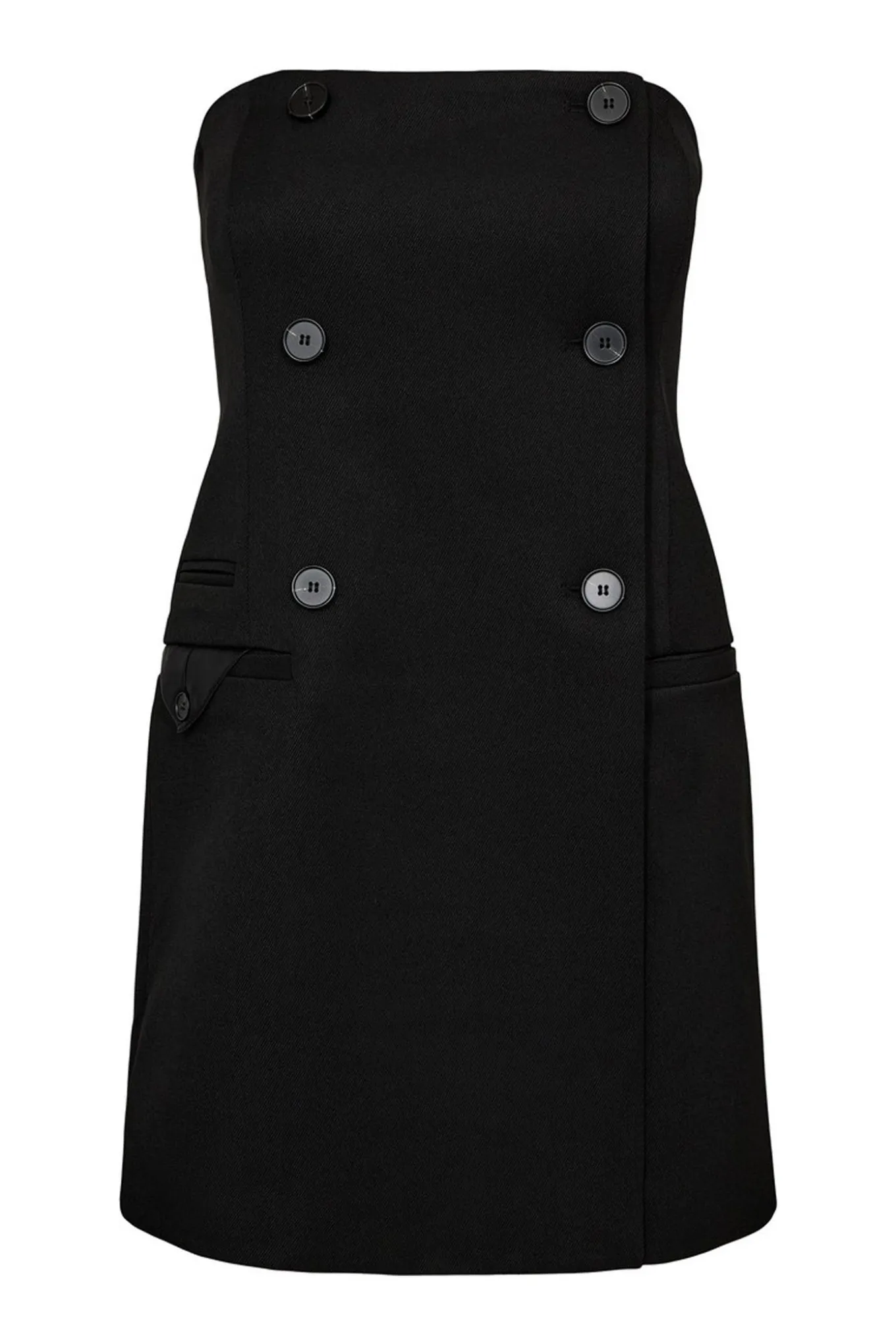 Chic corsage kjole fra Haute L’Amitié med smarte knapdetaljer, en kort længde og en slim-fit pasform.