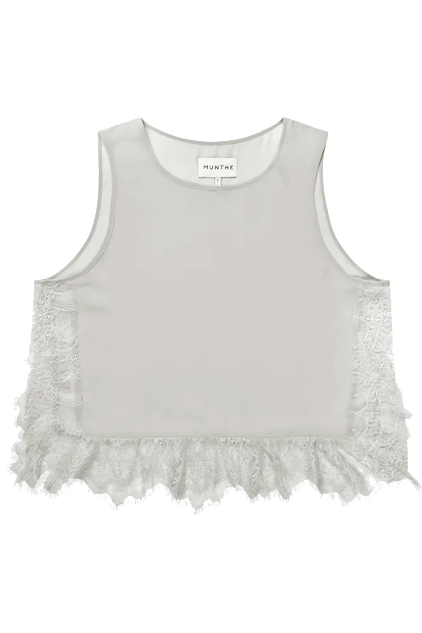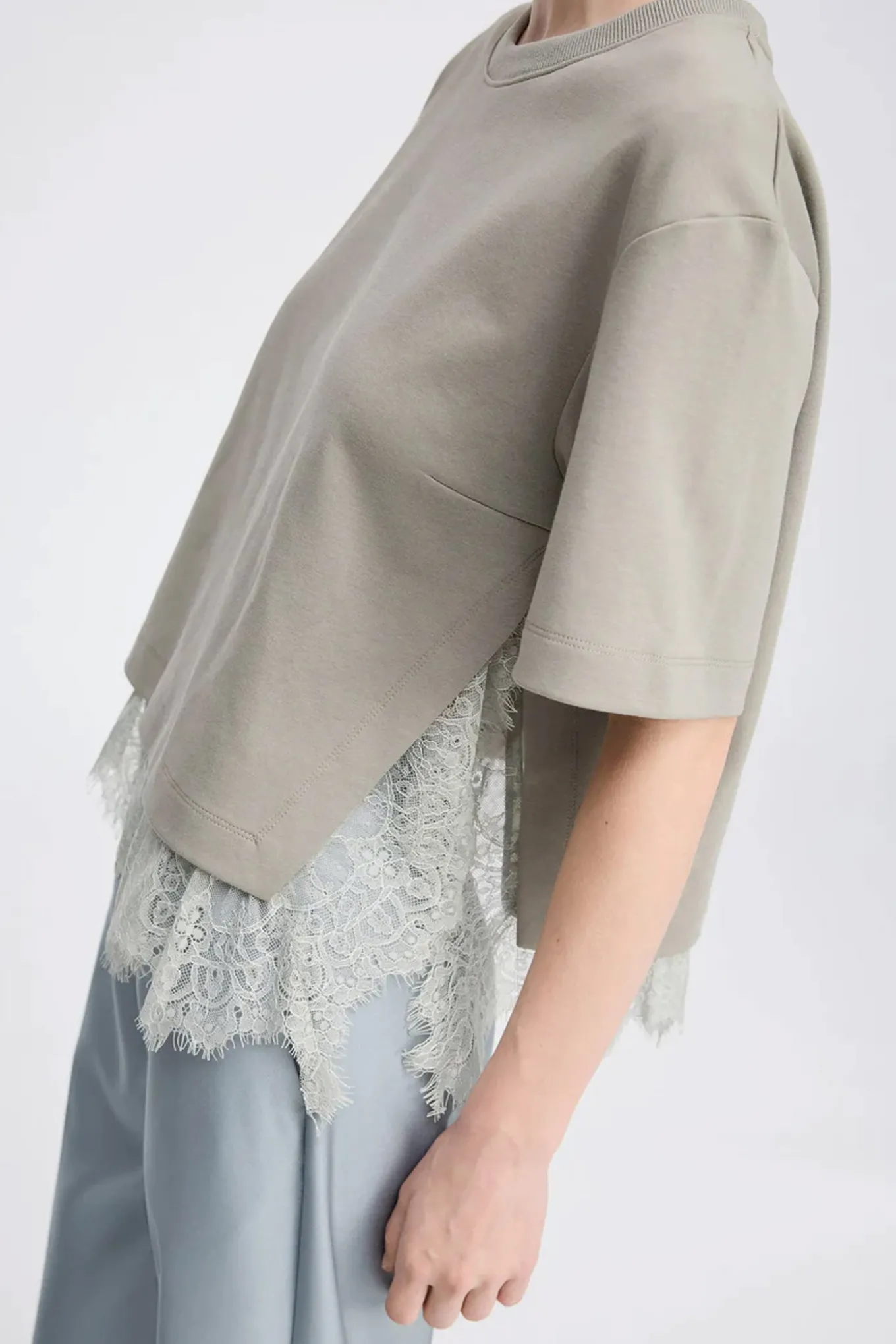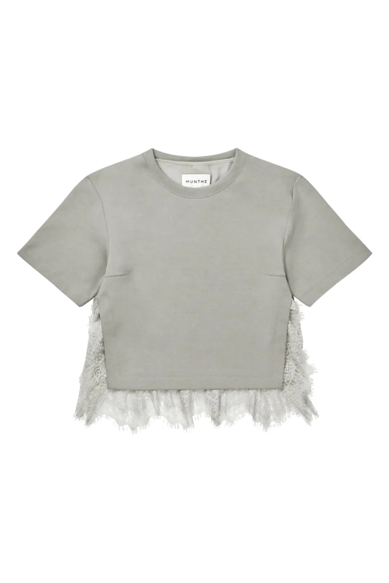 T-shirt, der består af to smukke styles: En klassisk, kort T-shirt og en elegant blondetop, som kan styles lag-på-lag eller bæres hver for sig. T-shirten er designet med slids i siderne.