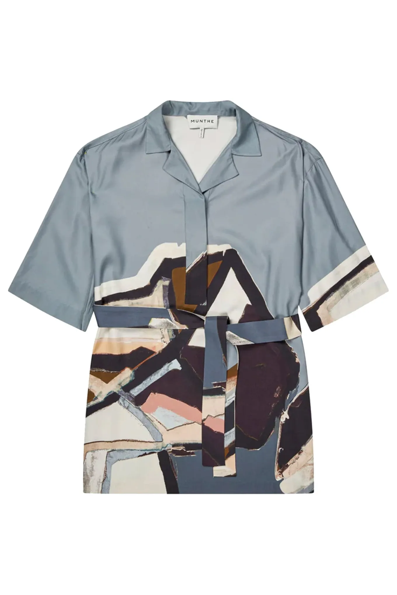 Kortærmet skjorte med smukt, farverigt kunstprint. Designet med åben krave og afslappet pasform – kan styles med eller uden det aftagelige bindebælte for et personligt udtryk.