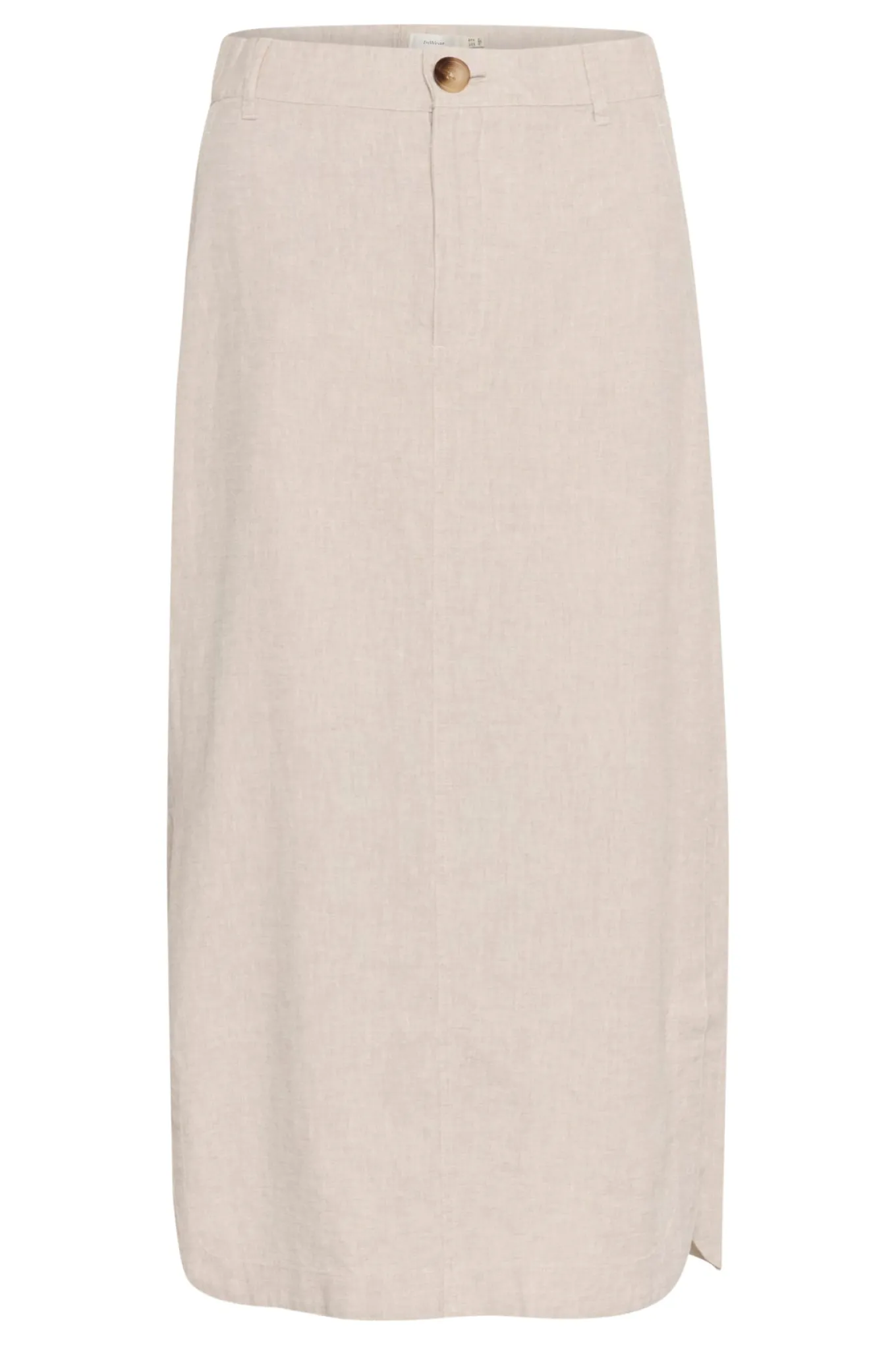 OBS! Fjernlager. Levering kan blive forlænget med 2-3 dage, hvis varen ikke findes i vores butik lige nu.Fin enkel nederdel fra InWear med slids i siden, mid-rise talje og en dejlig blød kvalitet.