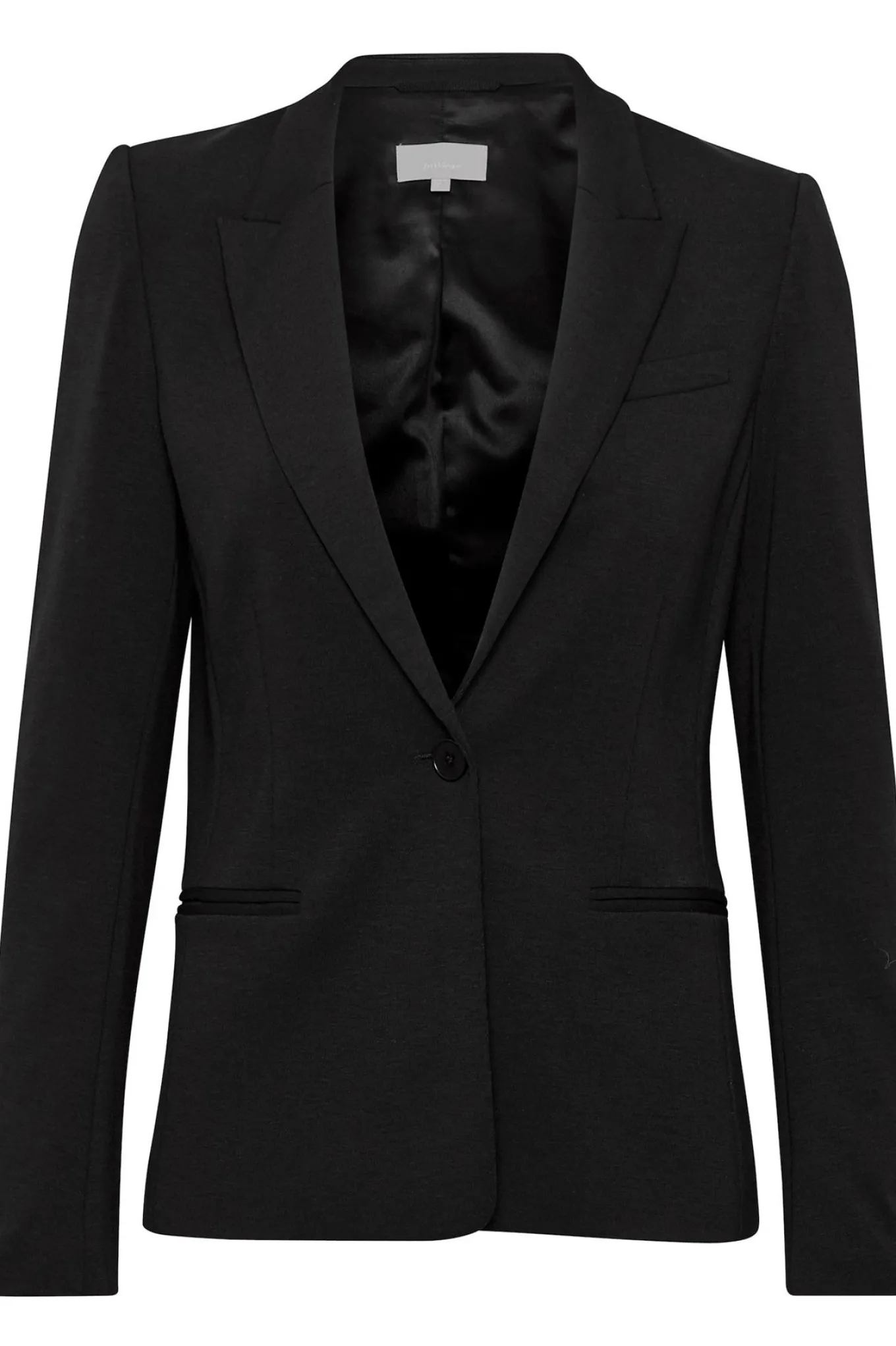 Levering kan blive forlænget med 1-2 dage, hvis varen ikke findes i vores butik lige nu.Klassisk blazer fra Inwear. Blazeren har en knappelukning med en knap foran og 2 lommer foran.