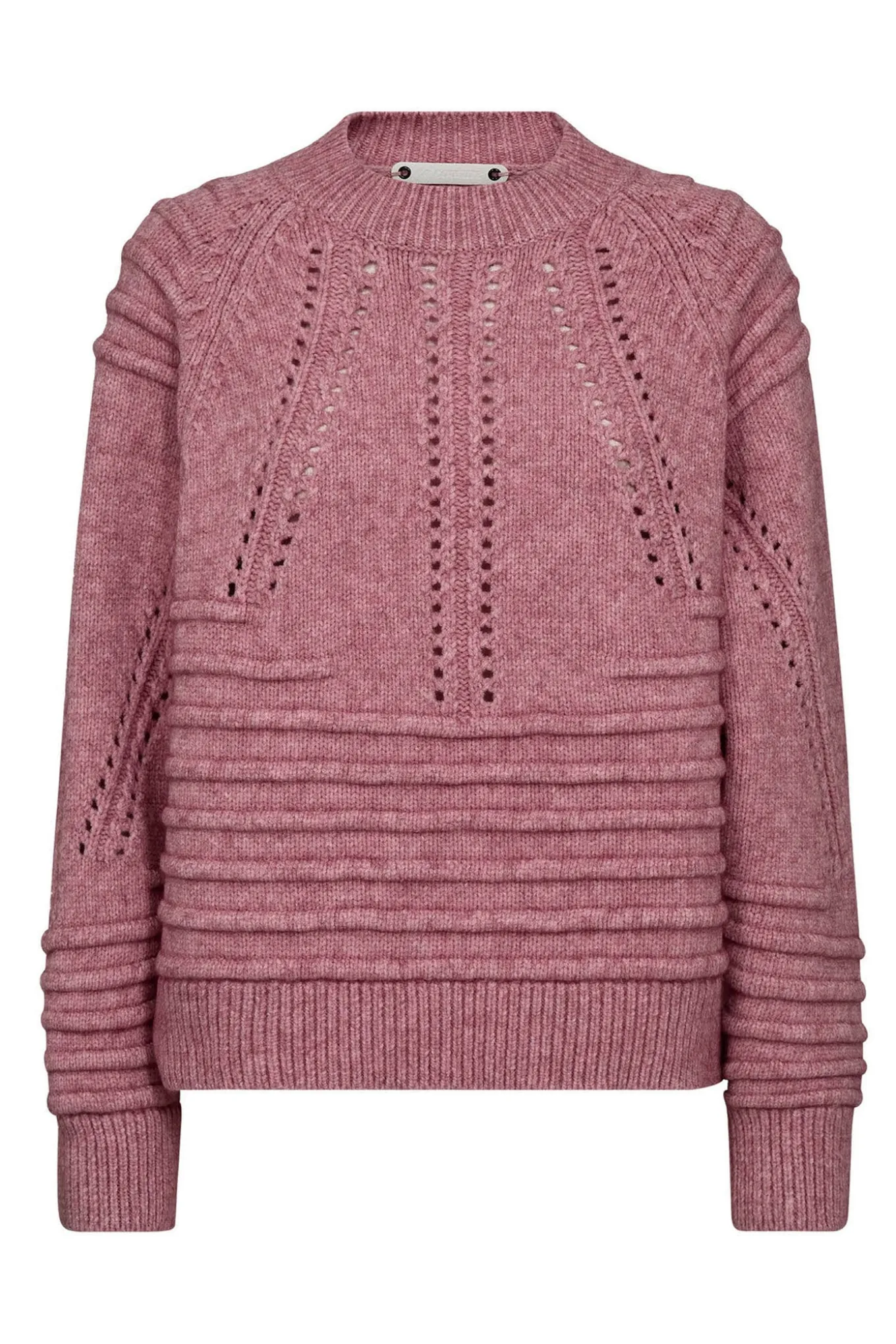 Forkæl dig selv med denne bløde og feminine striktrøje fra Co’couture. Den skønne candyfloss farve kombineret med det bløde materiale af acrylic, polyester og polymide, gør den perfekt til en varm og trendy påklædning.
