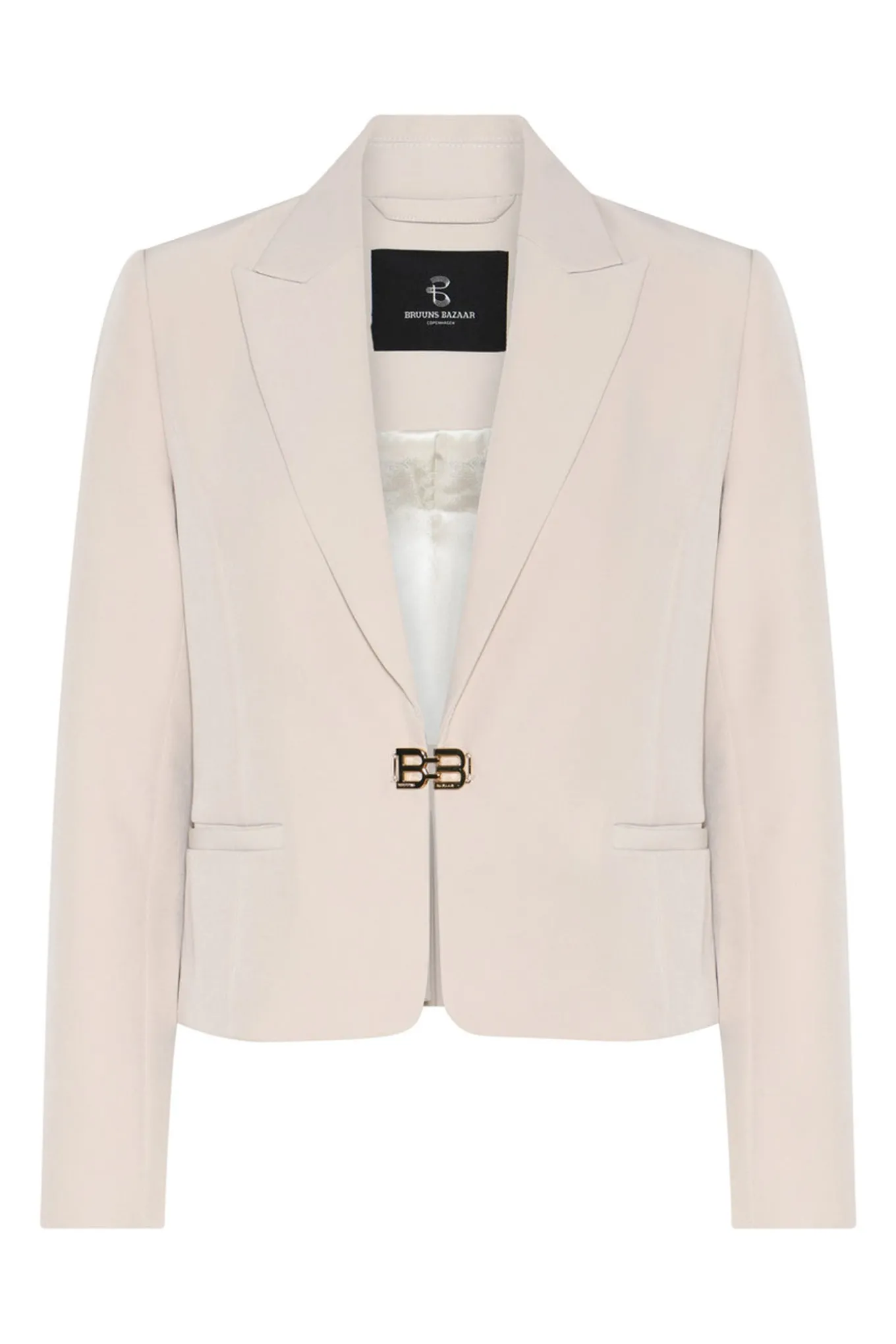Få et sofistikeret look med denne elegante blazer i farven Moonbeam fra Bruuns Bazaar Women. Den er lavet af genanvendt polyester og polyamid, og er perfekt til enhver lejlighed.