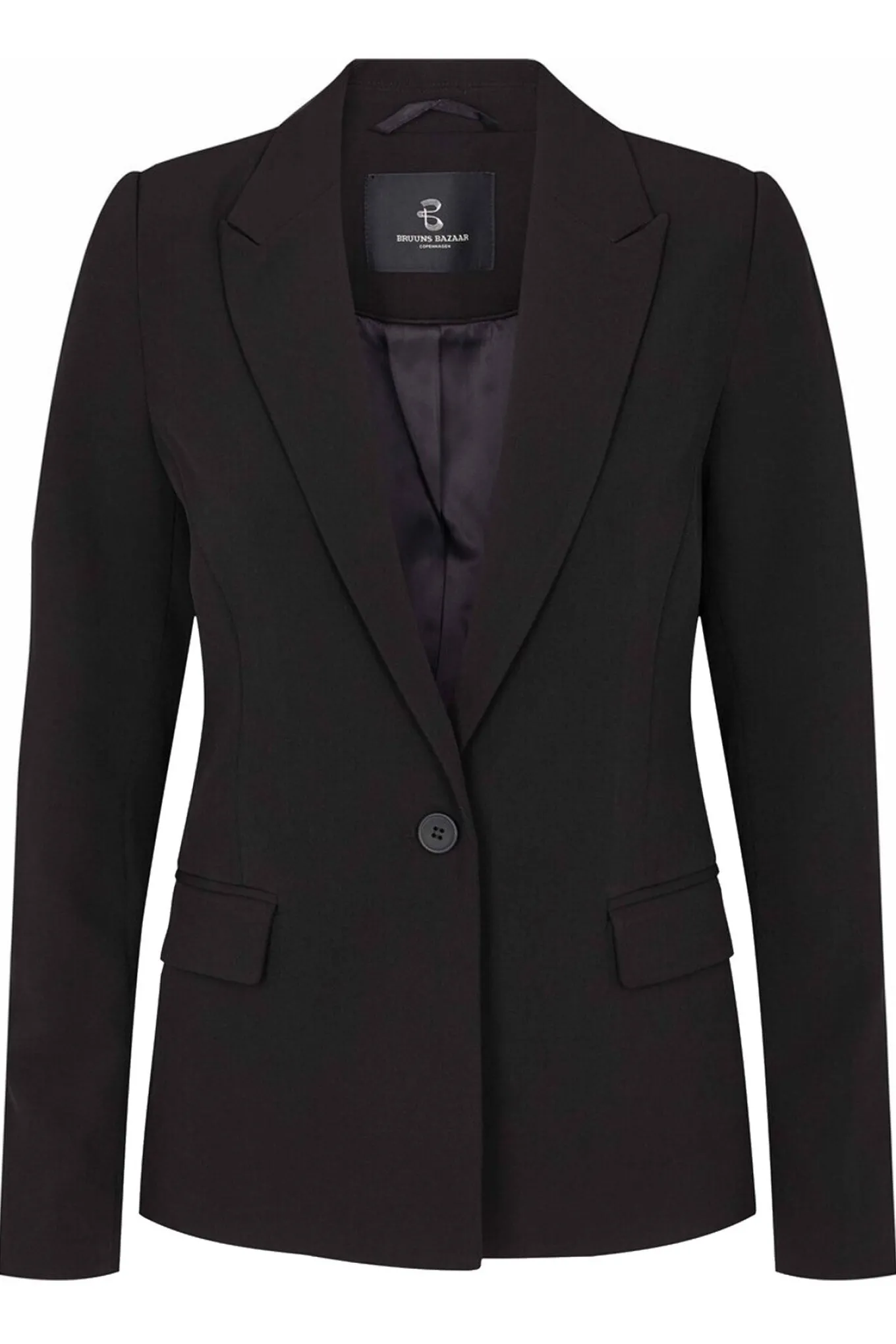 Bliv klar til enhver lejlighed med denne elegante, sorte blazer fra Bruuns Bazaar Women. Fremstillet af 50% genbrugs-polyester og 46% P for en bæredygtig garderobe.