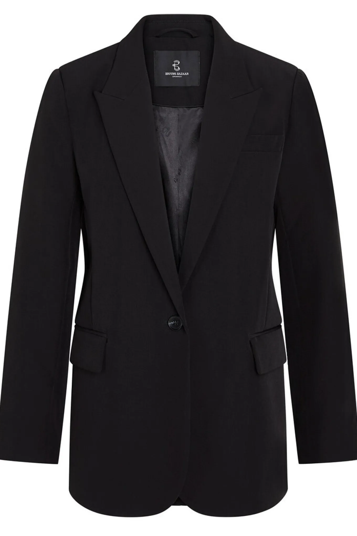 Klassisk blazer fra Bruuns Bazaar med lange ærmer, lommeflapper, knaplukning i fronten og en løs silhuet.