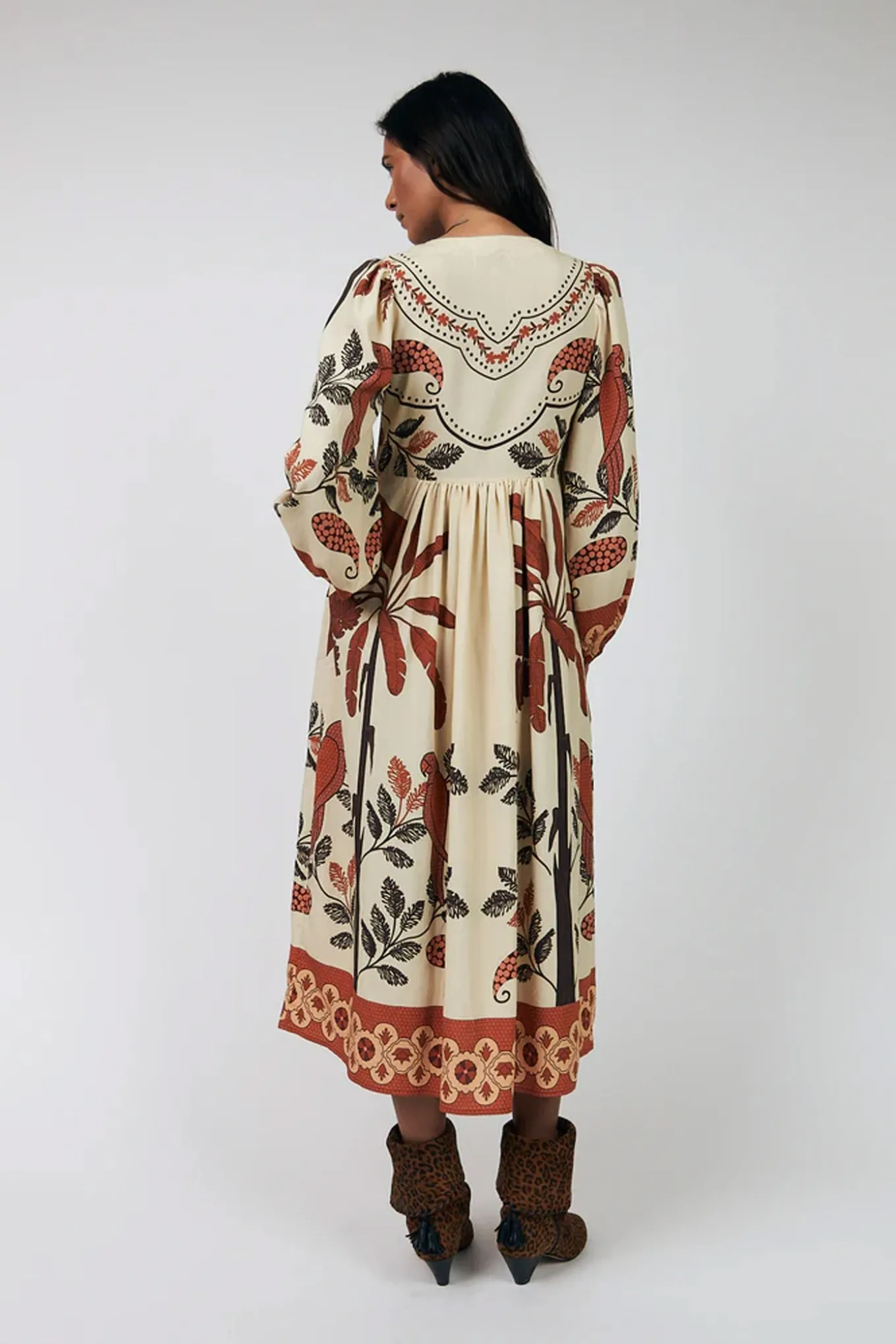 Få et stilfuldt look i denne creme kjole fra Lollys Laundry. Den er lavet af blød viskose og nylon, og passer perfekt til enhver lejlighed.