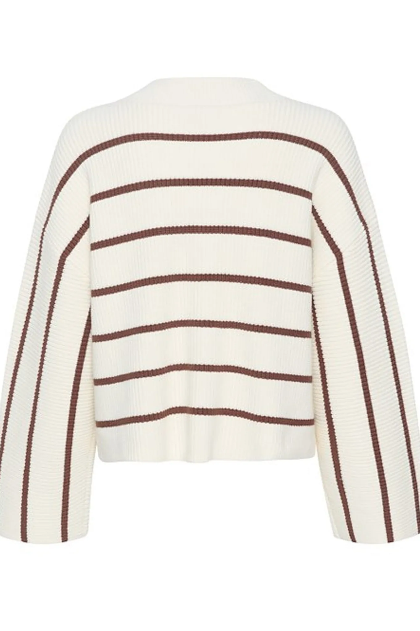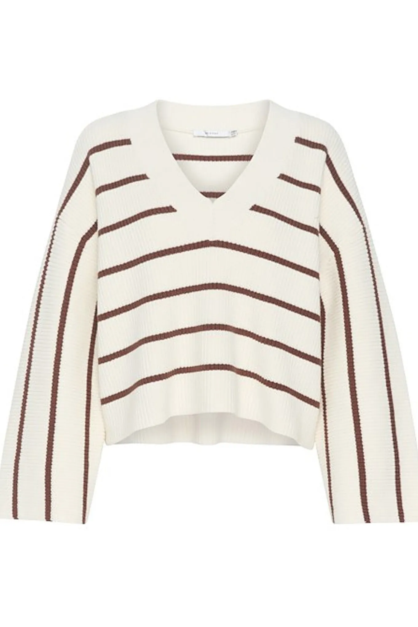 - Model: Sebagz V-Neck Pullover Strik 10909268 Egret With Brown Stripes