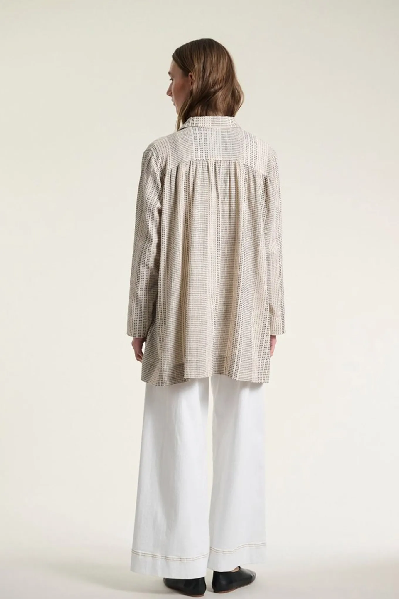 Shiko lang skjorte IVORY/BLACK STITCH 26124645616