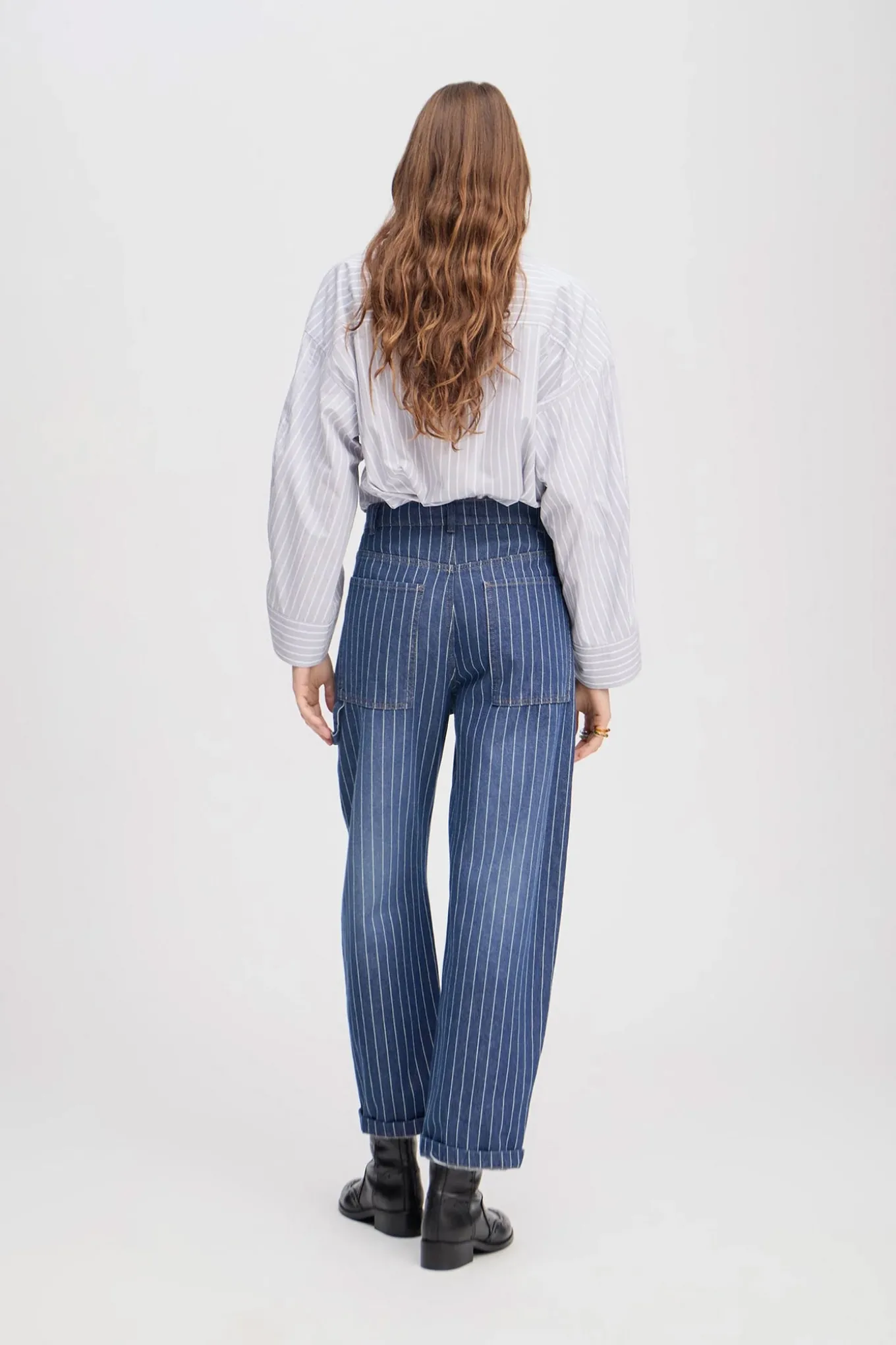Cargo pants inspirerede denim bukser med elegante nålestriber, sidelommer og oversize baglommer. Bukserne er fremstillet af 100% økologisk bomuld.