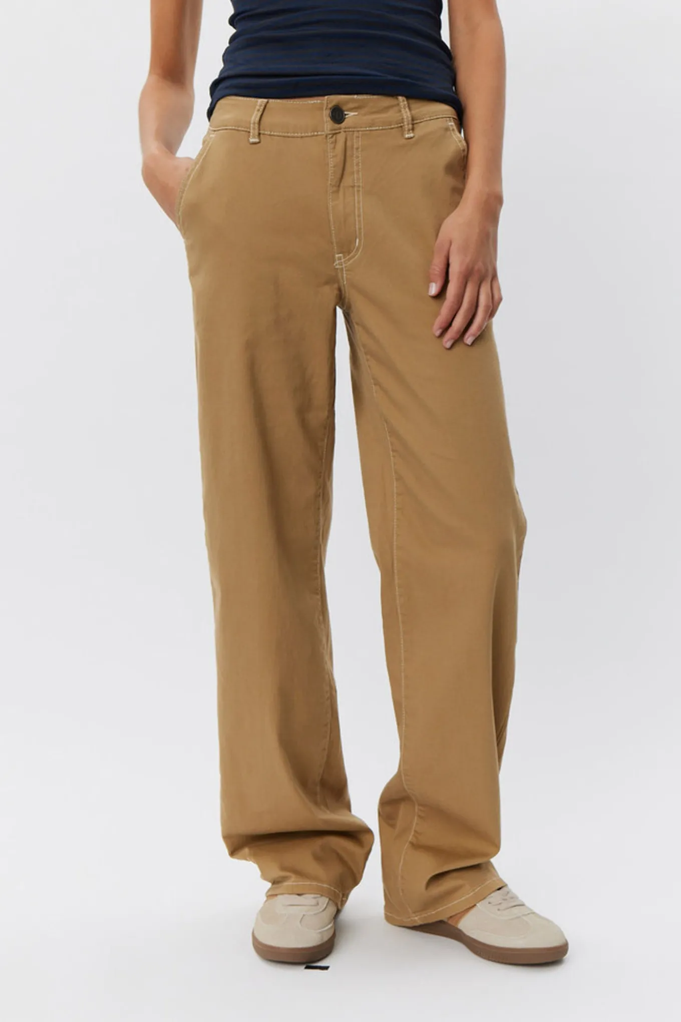Skab et stilfuldt og behageligt outfit med disse bukser i camel fra Sofie Schnoor WOMAN. Lavet af 97% bomuld og 3% elastane, de er perfekte til enhver lejlighed. Findes også i størrelser til ekstra komfort.