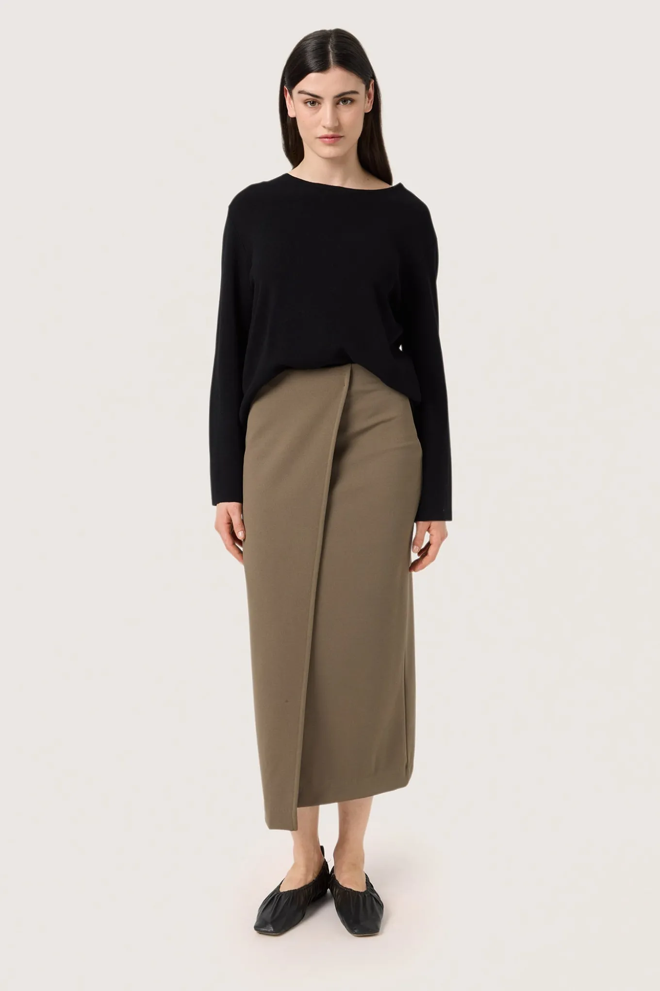 OBS! Fjernlager. Levering kan blive forlænget med 2-3 dage, hvis varen ikke findes i vores butik lige nu.Elegant nederdel fra Soaked In Luxury med elastikkant i taljen, en slim-fit pasform og klassisk snit.
