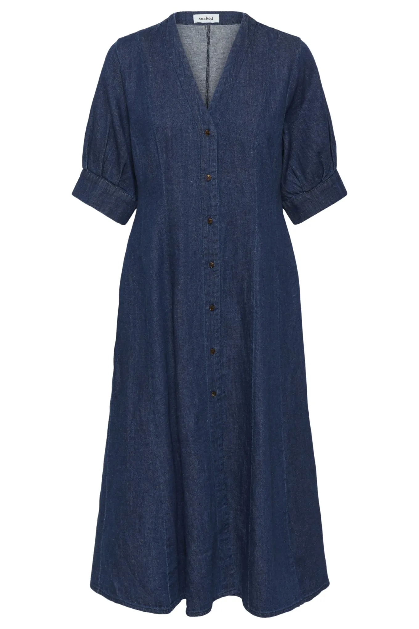 Skab et sofistikeret look med denne kjole fra Soaked in Luxury. Den smukke mørkeblå farve i denim look og materialet af bomuld og hør gør den perfekt til enhver lejlighed.