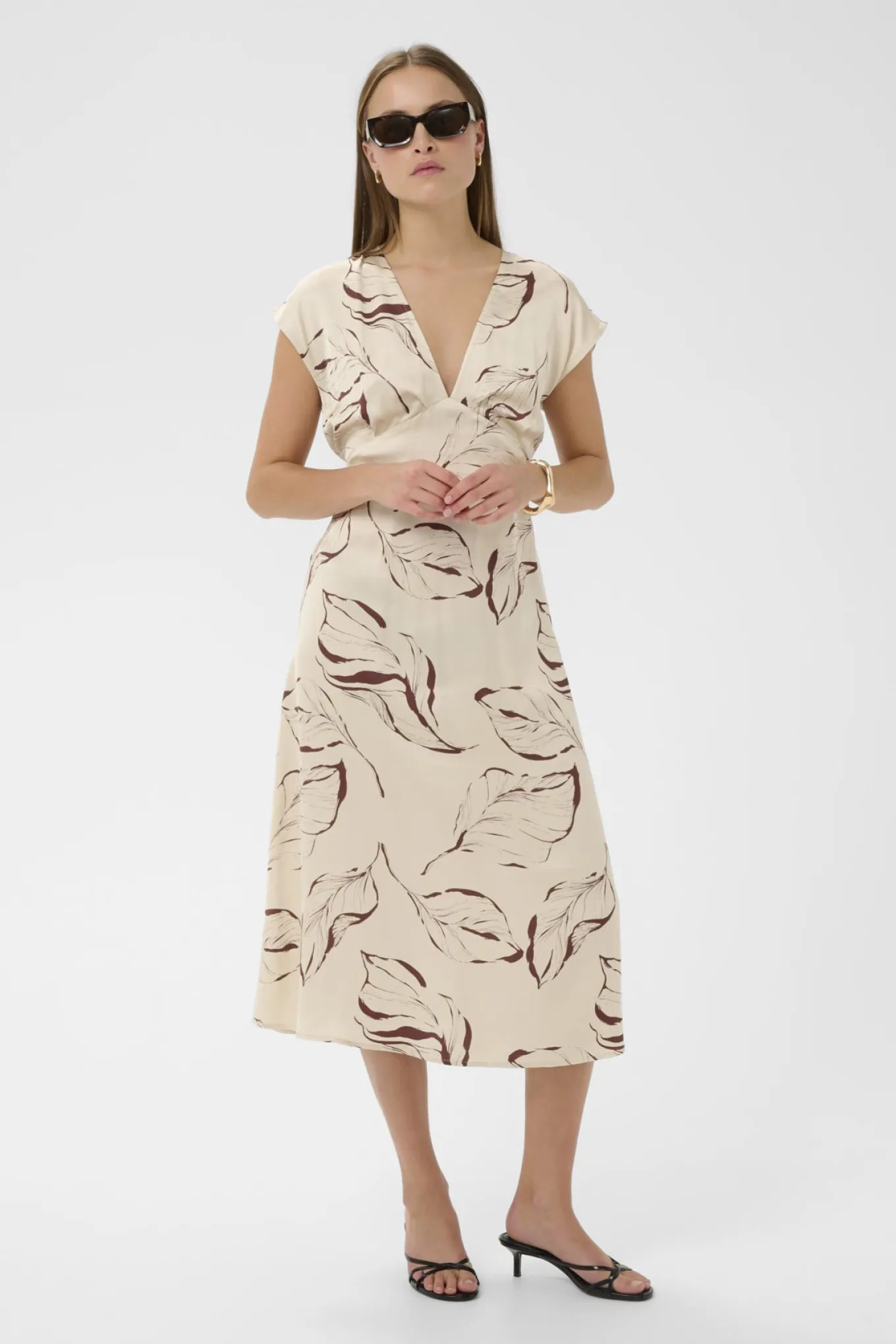 SLClero Midi Printed Dress Oatmeal Leave Print 304871 30409240