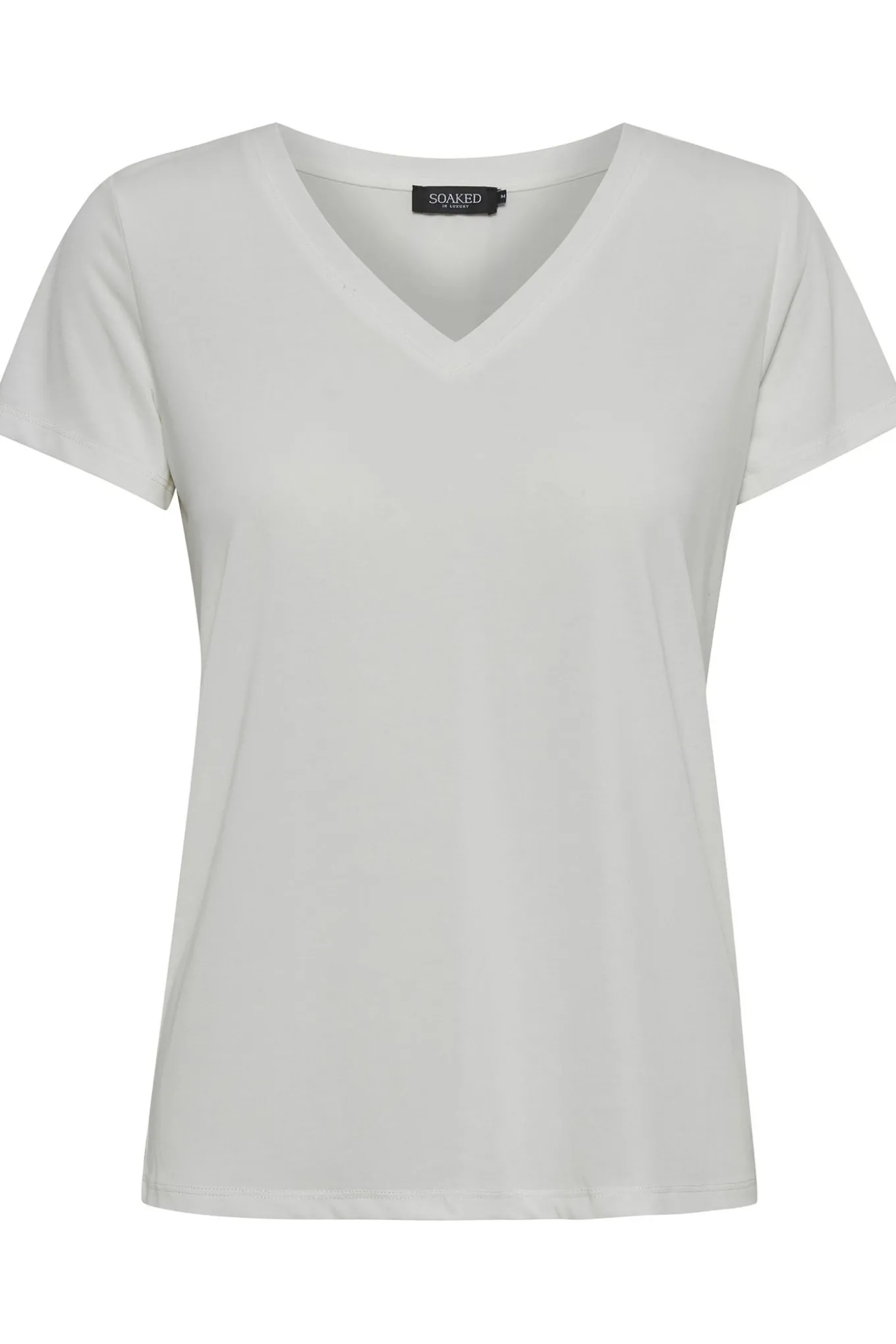 OBS! Fjernlager. Levering kan blive forlænget med 1-2 dage, hvis varen ikke findes i vores butik lige nu.Smart t-shirt fra Soaked In Luxury med korte ærmer, v-hals og en lækker kvalitet.