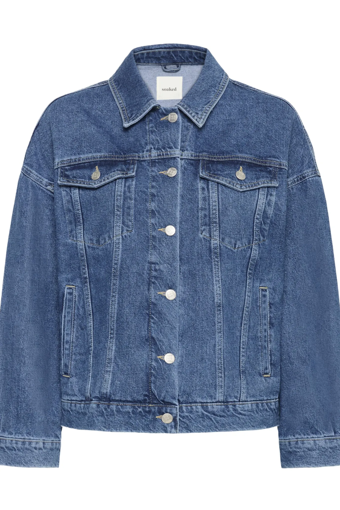 Opdater dit look med denne klassiske blå denimjakke fra Soaked in Luxury. Lavet af 100% bomuld, er den perfekt til enhver lejlighed.