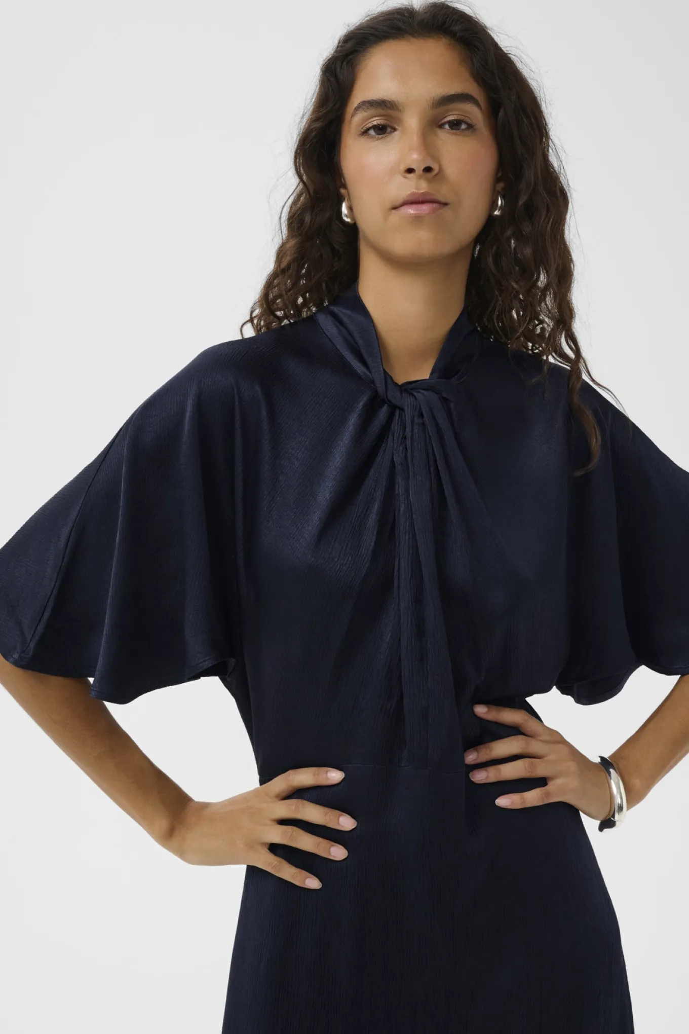Skab et elegant og tidløst look med denne smukke kjole i Night Sky farve. Kjolen er lavet af 55% Viscose (LENZING™ ECOVERO™) og 45% Viscose, og kommer fra mærket Soaked in Luxury. Perfekt til enhver lejlighed.