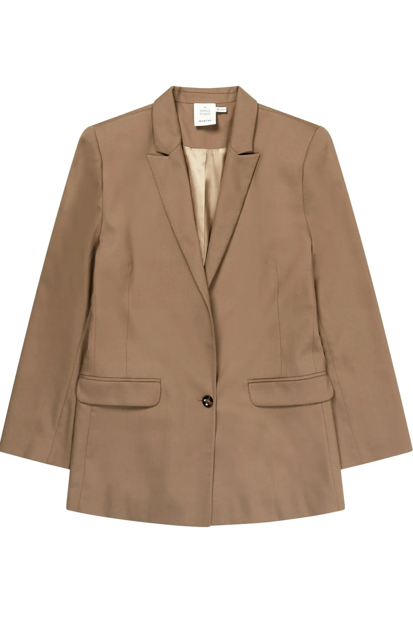 Cool og klassisk blazer fra Munthe med lange ærmer, en flot krave og lommeflapper. Blazeren lukkes i fronten med knap.