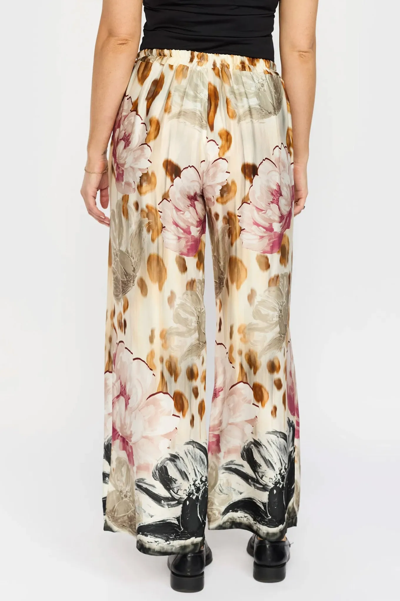 OBS! Fjernlager. Levering kan blive forlænget med 2-3 dage, hvis varen ikke findes i vores butik lige nu.Lækre bukser fra 2-Biz med elastikkant i taljen, vidde i benene og det smukkeste print med flotte farver.