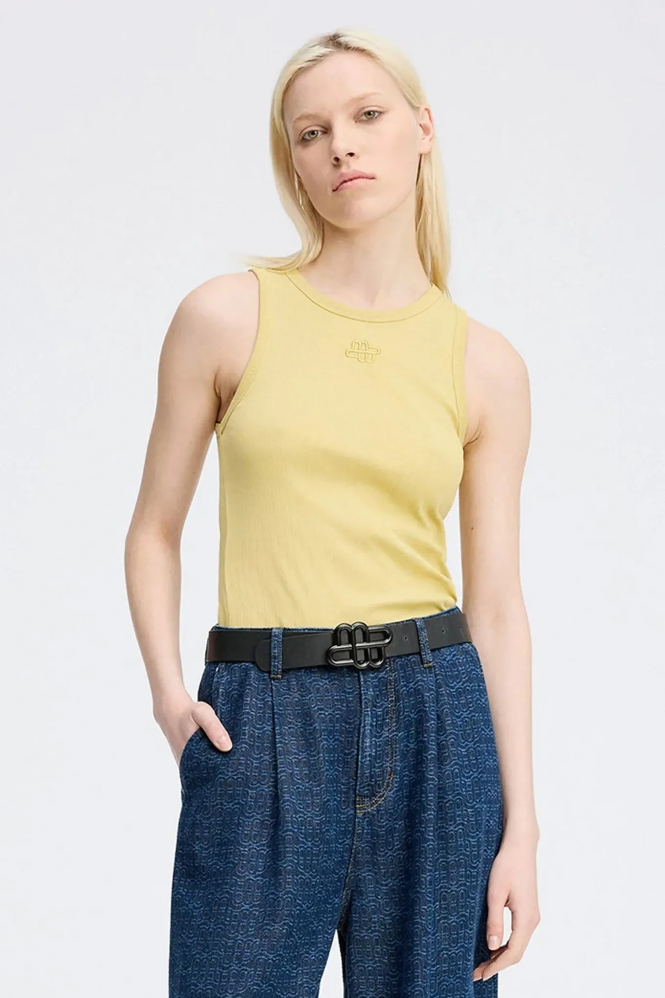Skab et frisk og bæredygtigt udtryk med denne top fra Munthe. Den er lavet af 100% økologisk bomuld i en skøn lemon-gul farve.