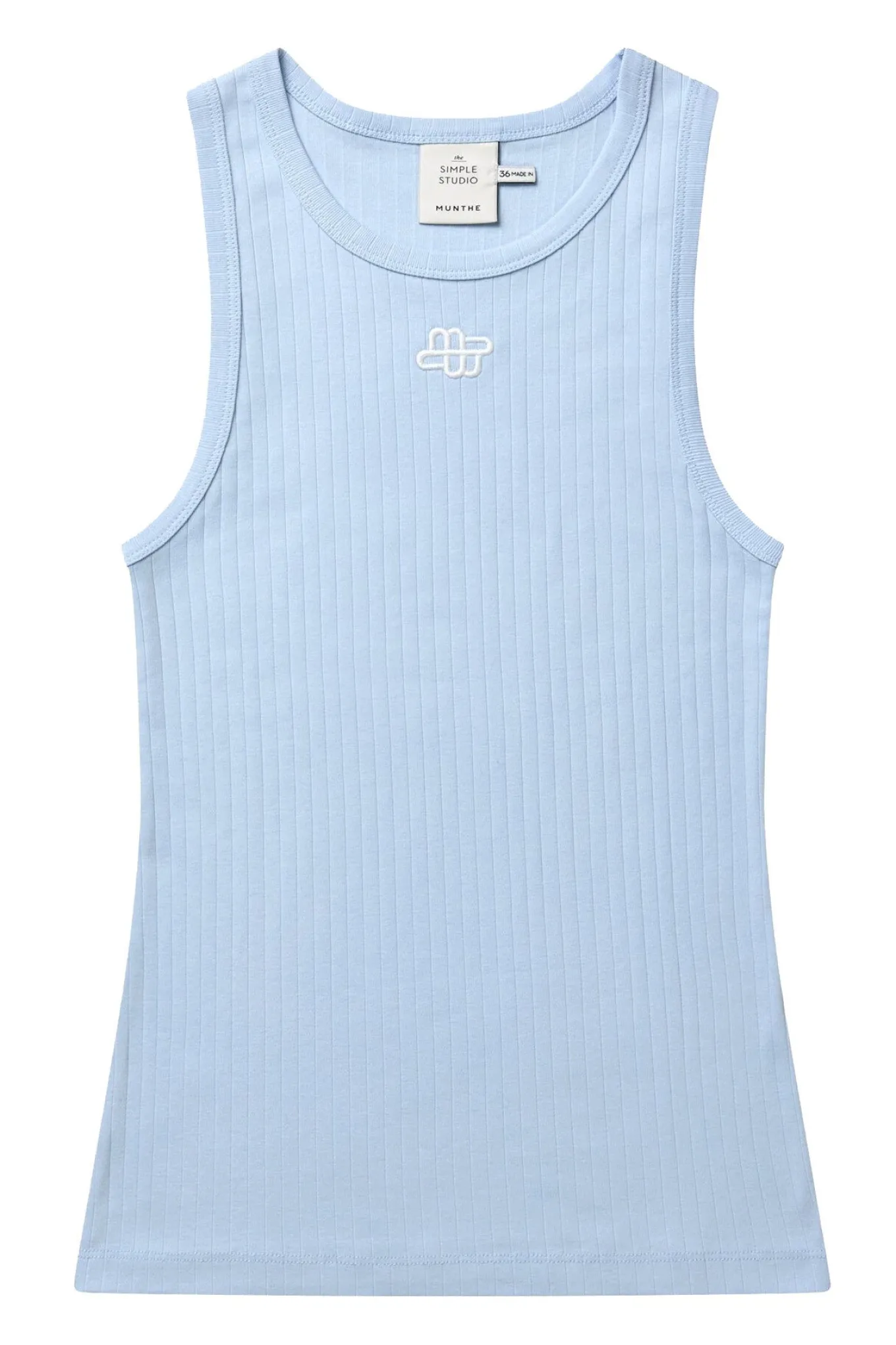 OBS! Fjernlager. Levering kan blive forlænget med 2-3 dage, hvis varen ikke findes i vores butik lige nu.Fin basis top fra Munthe med en lille broderet logo detalje.
