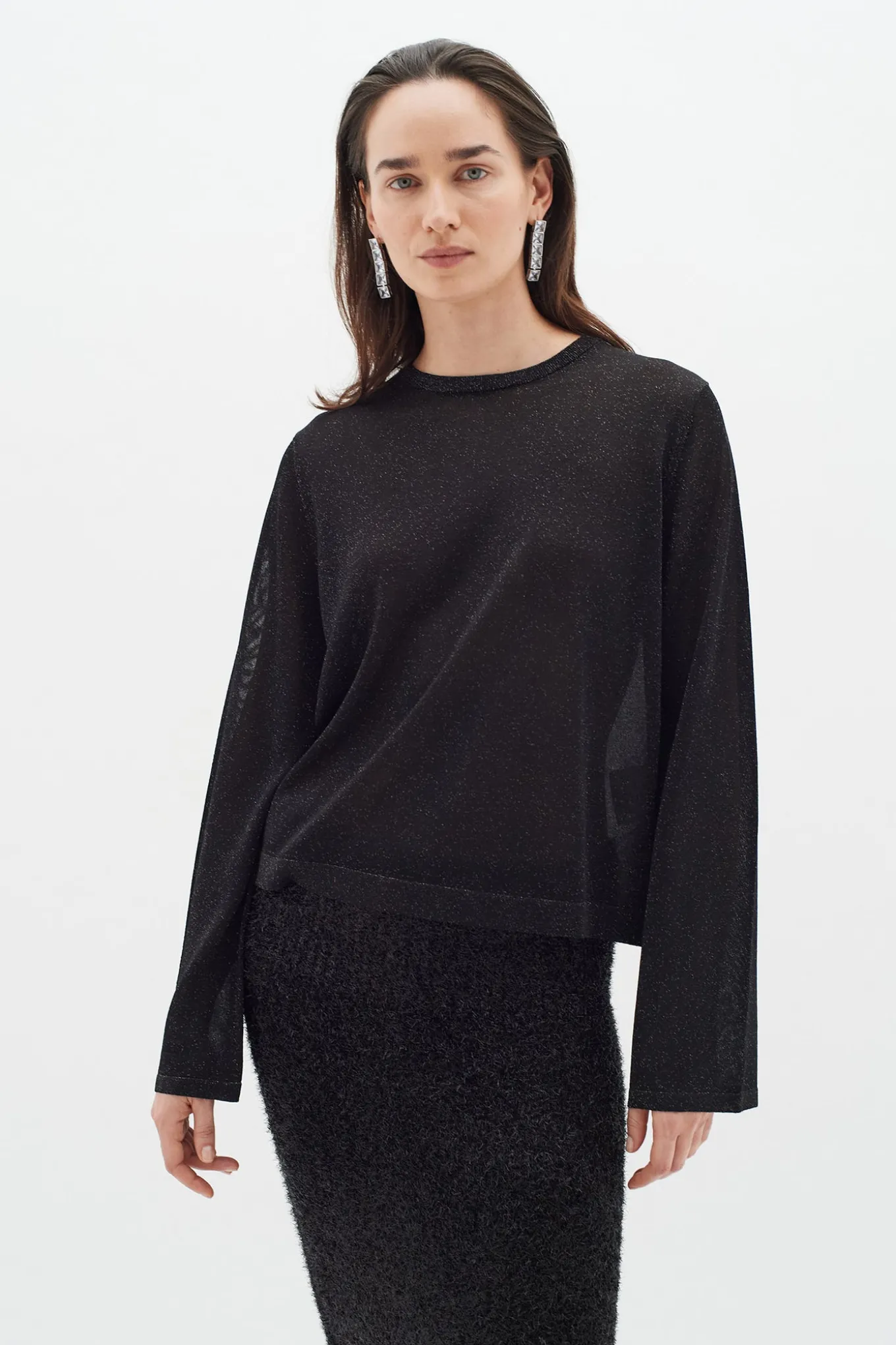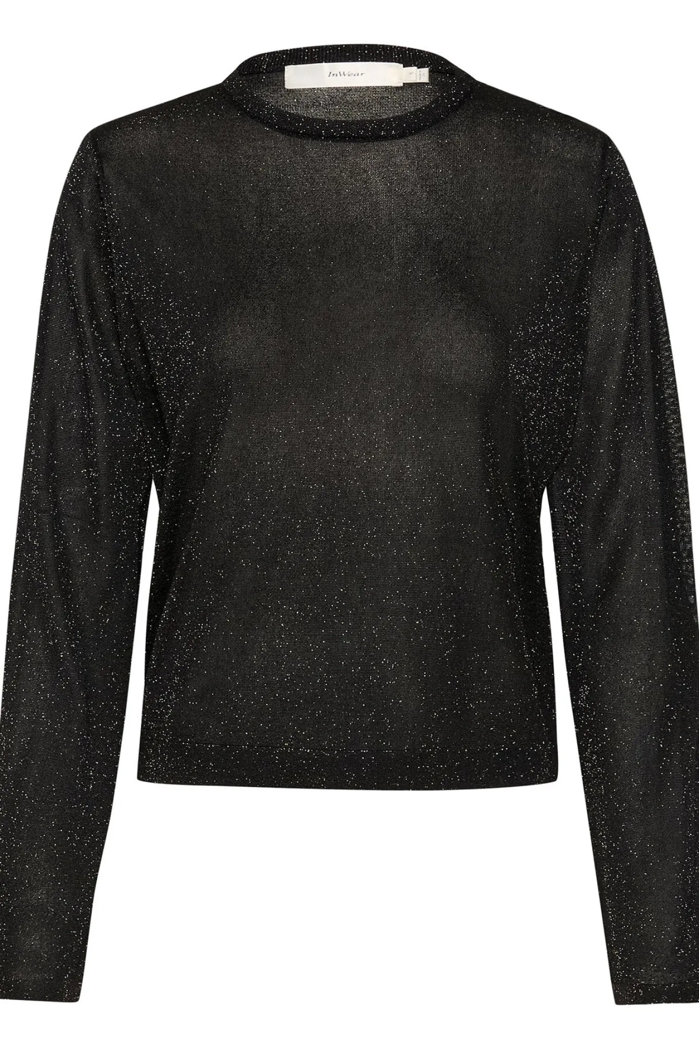 OBS! Fjernlager. Levering kan blive forlænget med 2-3 dage, hvis varen ikke findes i vores butik lige nu.Fin enkel strik fra InWear med lange ærmer, rund hals og en skøn glimmerkvalitet.