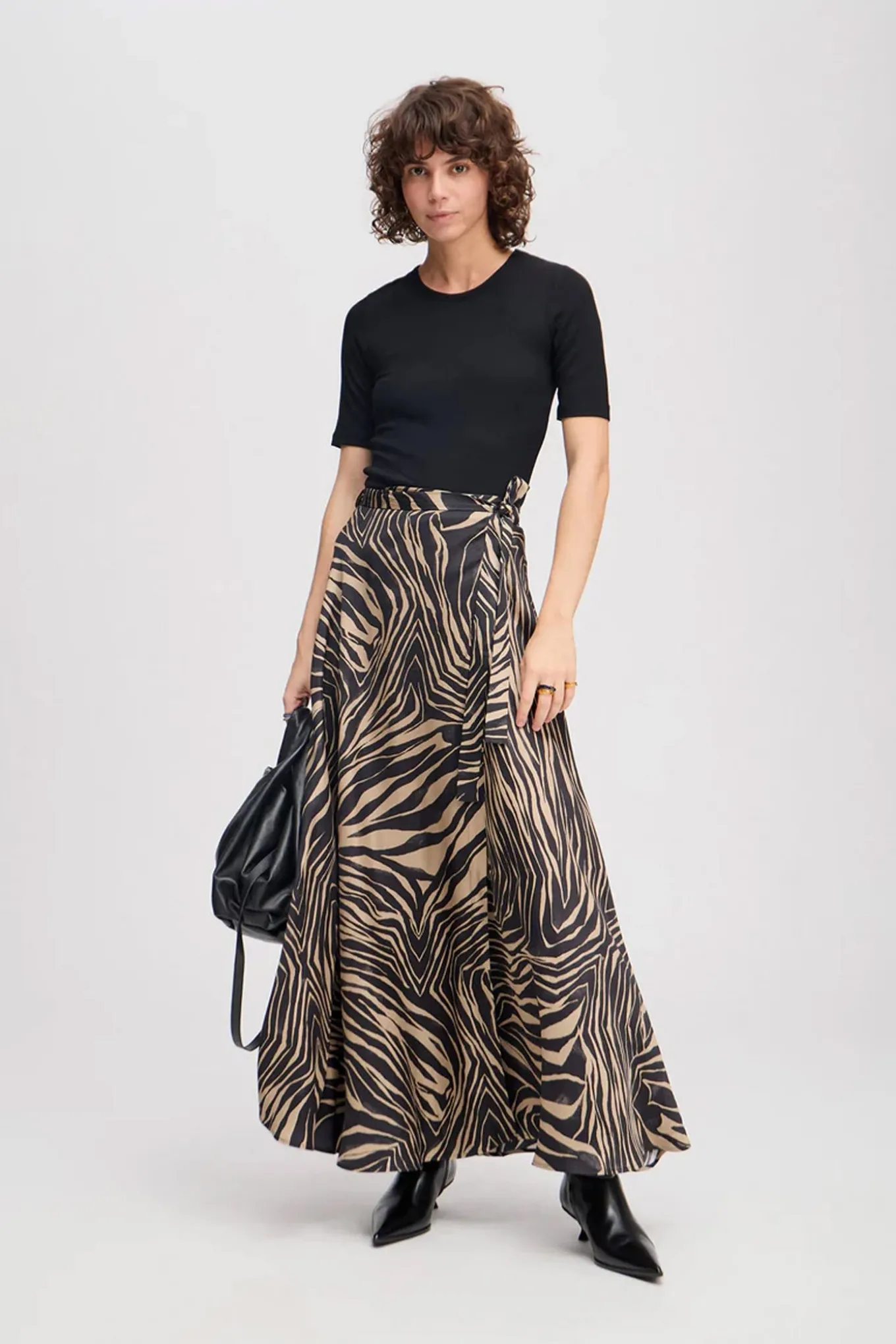 Smuk slå-om-nederdel med et elegant all-over-print. Nederdelen har et let udtryk og er designet i en almindelig pasform, der kan bindes i taljen.