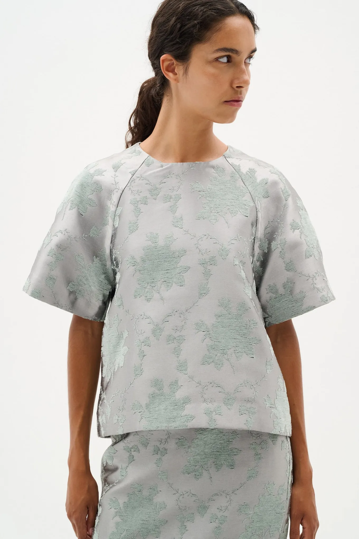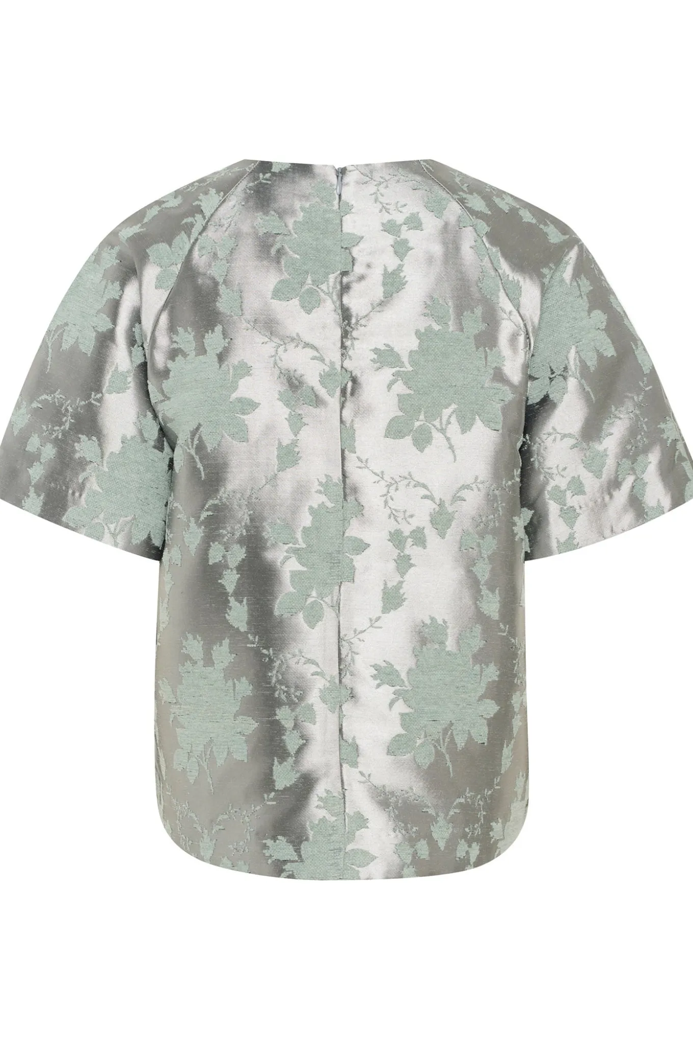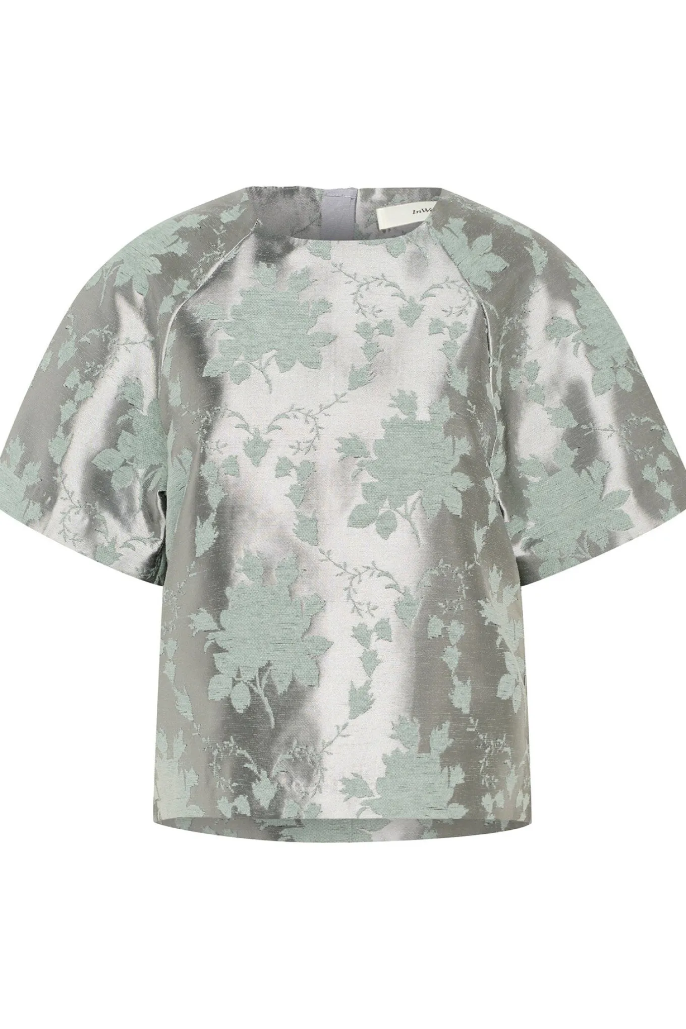 OBS! Fjernlager. Levering kan blive forlænget med 2-3 dage, hvis varen ikke findes i vores butik lige nu.Smuk bluse fra InWear med ½ lange ærmer, rund halsudskæring og den flotteste metalliske kvalitet.