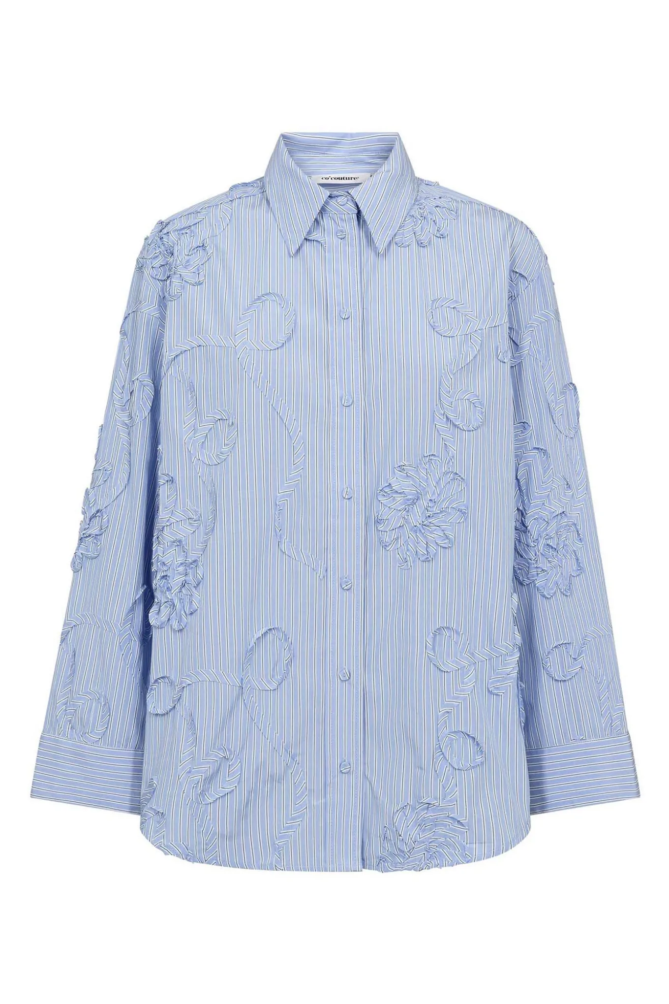 Denne skjorte fra CO’COUTURE er perfekt til enhver lejlighed. Den er lavet af en blanding af bomuld og polyester og har en smuk pastelblå farve, der tilføjer et elegant touch til dit outfit.