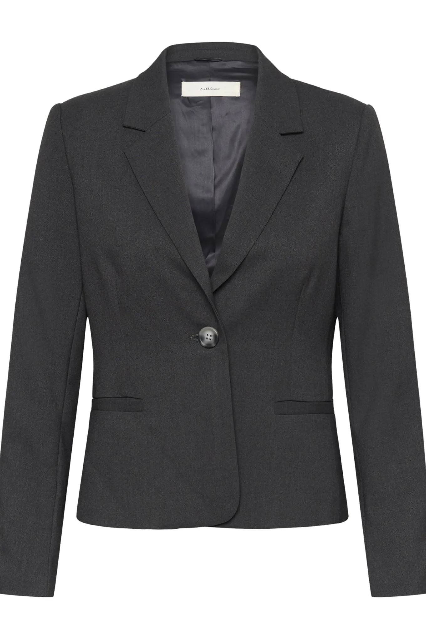 Få et elegant og tidløst look med denne medium grå blazer fra Inwear. Den er lavet af en blanding af polyester, viskose og elastan, hvilket giver en behagelig og fleksibel pasform. Perfekt til enhver lejlighed.