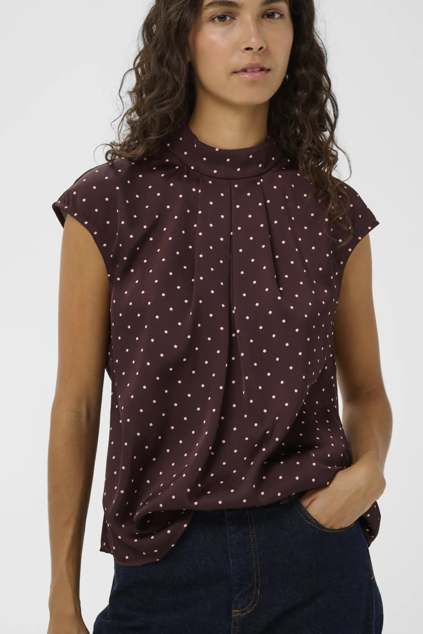 Få et unikt og stilfuldt look med denne bluse fra Inwear i brun bordeaux med små prikker. Lavet af 100% polyester, perfekt til enhver lejlighed.