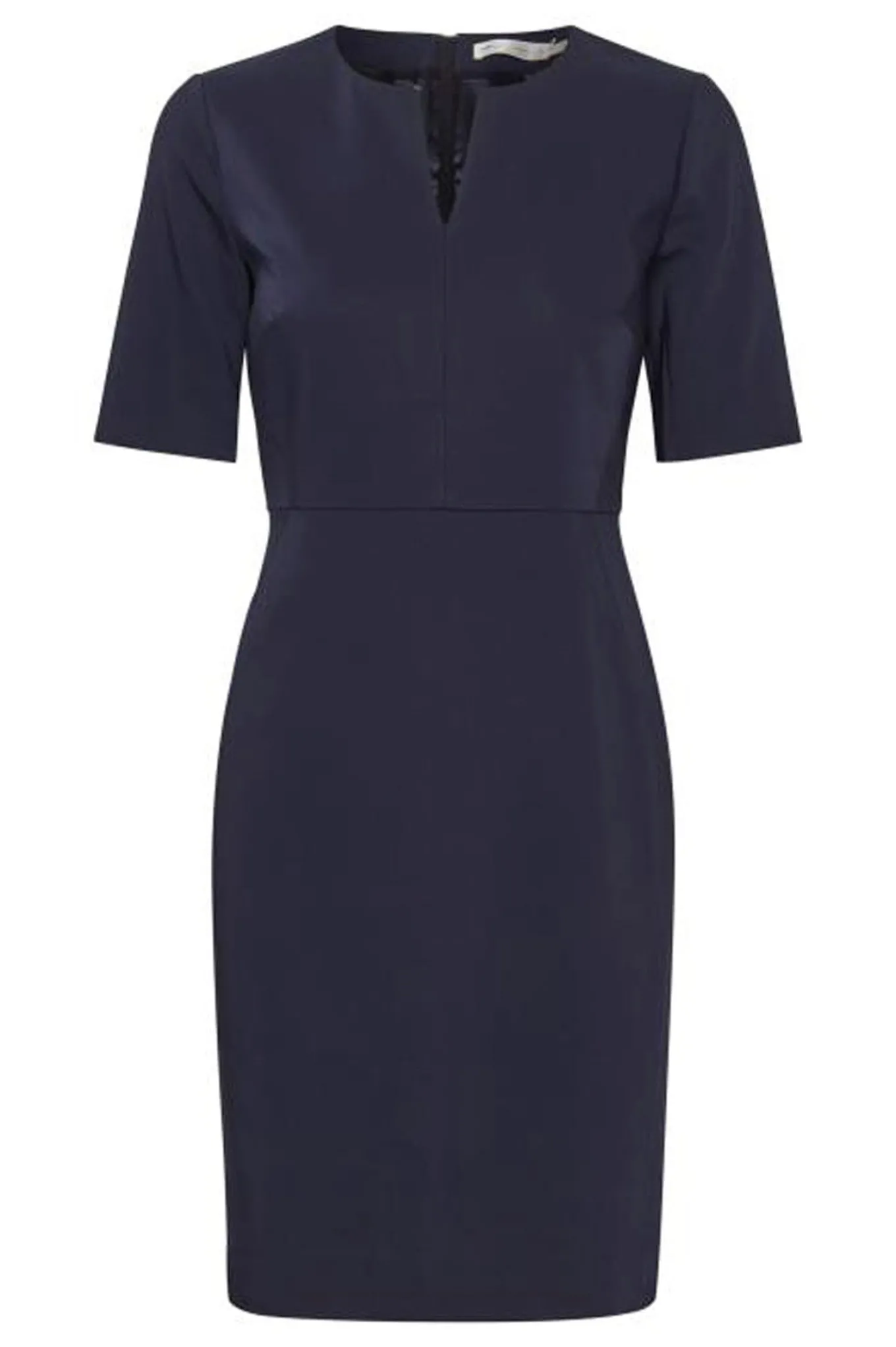 Levering kan blive forlænget med 1-2 dage, hvis varen ikke findes i vores butik lige nu.Super fin elegant kjole fra Inwear. Kjolen har korte ærmer med en lille slids bagpå, Smal v-halsudskæring og går ind i taljen som giver den en mere feminint look.