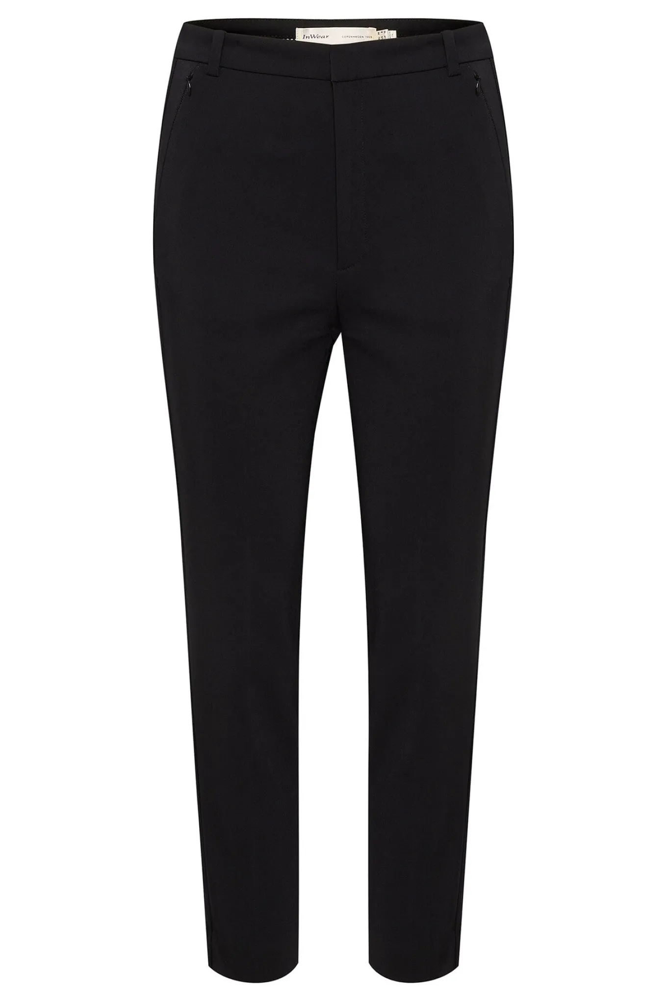 OBS! Fjernlager. Levering kan blive forlænget med 2-3 dage, hvis varen ikke findes i vores butik lige nu.Flotte enkle bukser fra InWear med en tætsiddende pasform og mid-rise talje.
