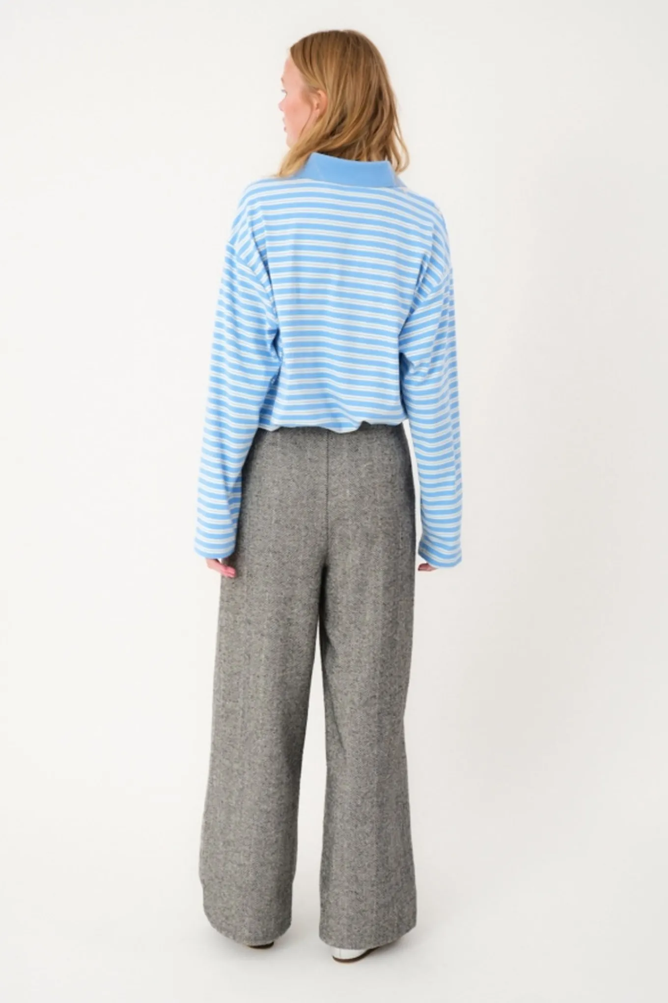 Smarte bukser fra Lollys Laundry med brede ben, læg foran og en afslappet pasform med fast linning – hvilket gør dem både flatterende og behagelige.