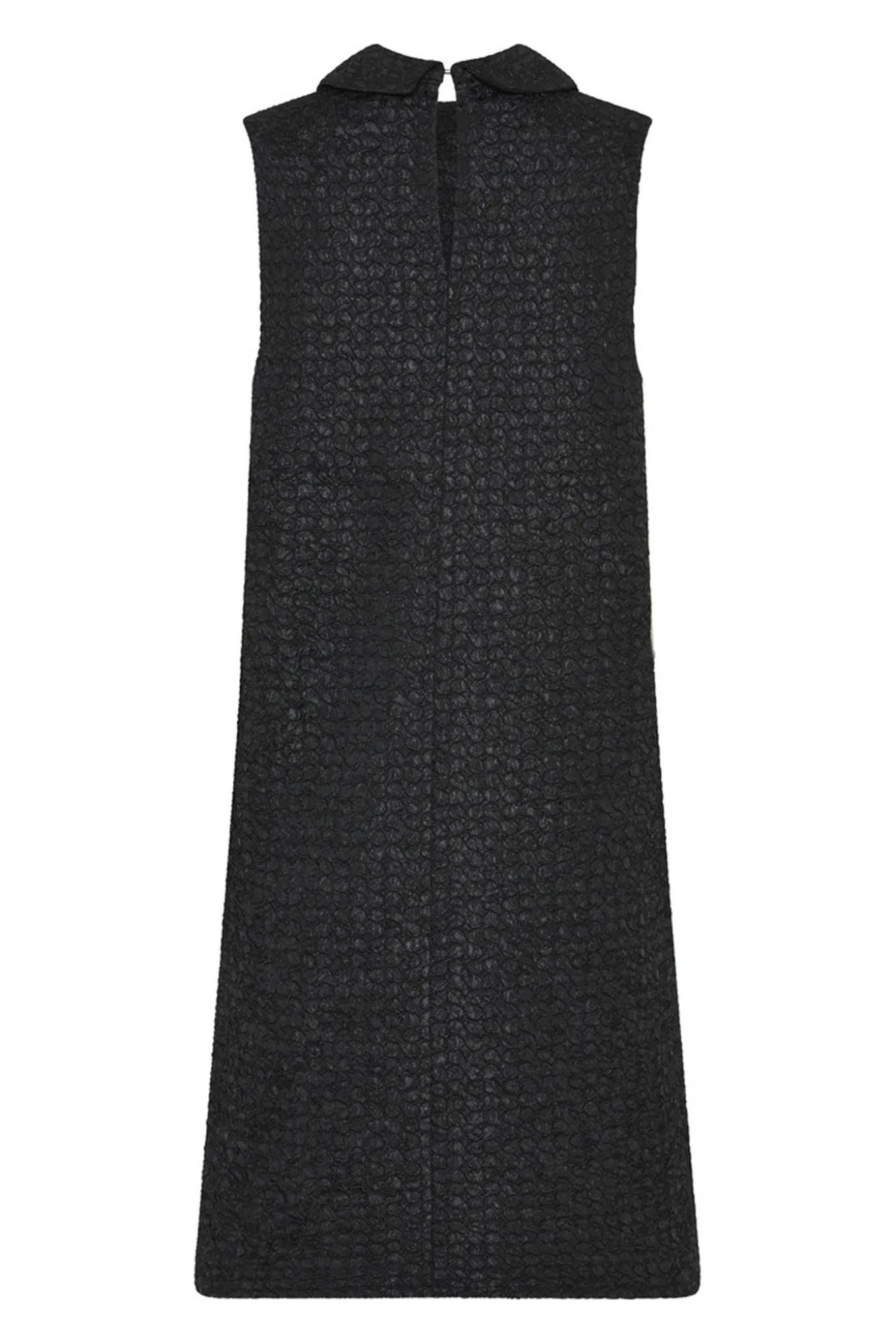 Ærmeløs kjole i struktureret stof med en afrundet Peter Pan-krave og en lige, minimalistisk silhuet. Den enkle form får dybde gennem det taktile materiale.