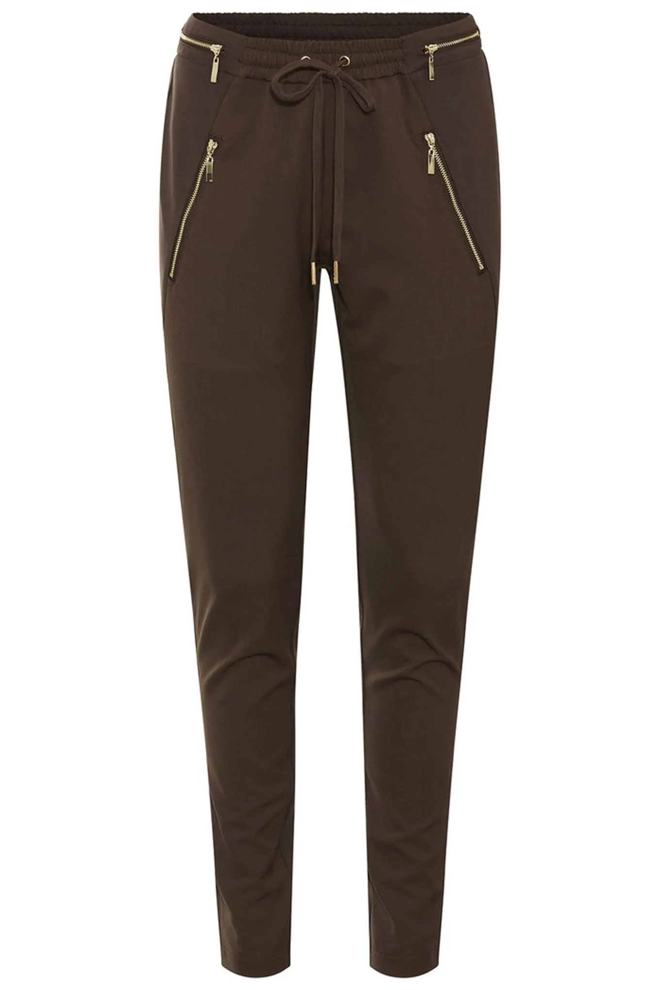 OBS! Fjernlager. Levering kan blive forlænget med 2-3 dage, hvis varen ikke findes i vores butik lige nu.Løstsiddende og casual bukser fra Rue de Femme med et strejf af luksus! Bukserne har også smarte lynlåsdetaljer, som tilføjer en subtil glans til dit look.