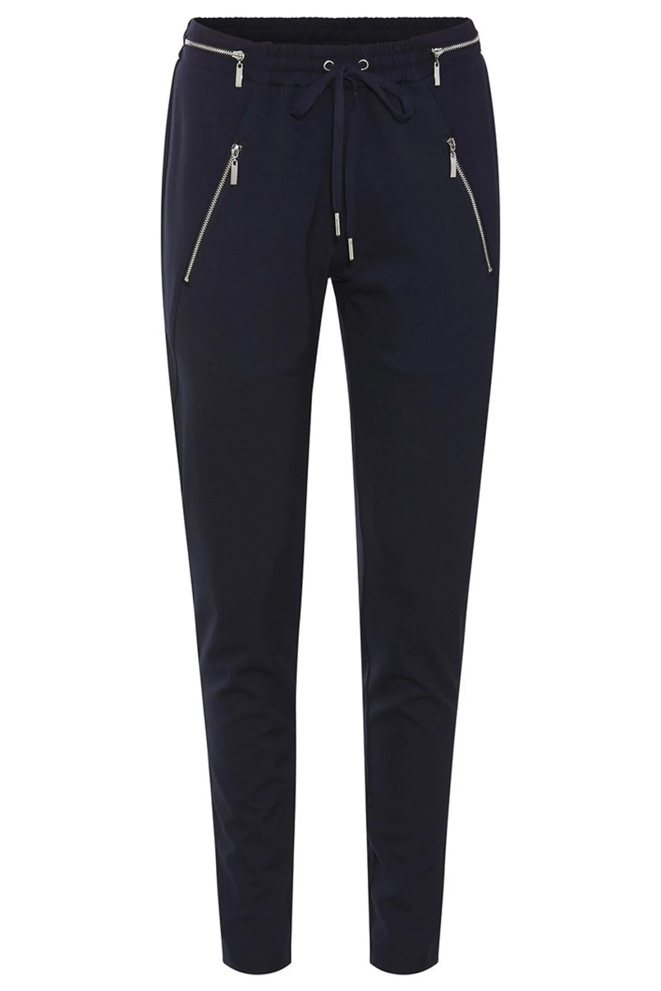 OBS! Fjernlager. Levering kan blive forlænget med 2-3 dage, hvis varen ikke findes i vores butik lige nu. Casual bukser fra Rue de Femme med et strejf af luksus. Lynlåse i sølv på taljen og lommerne tilføjer en subtil glans til det afslappede design.