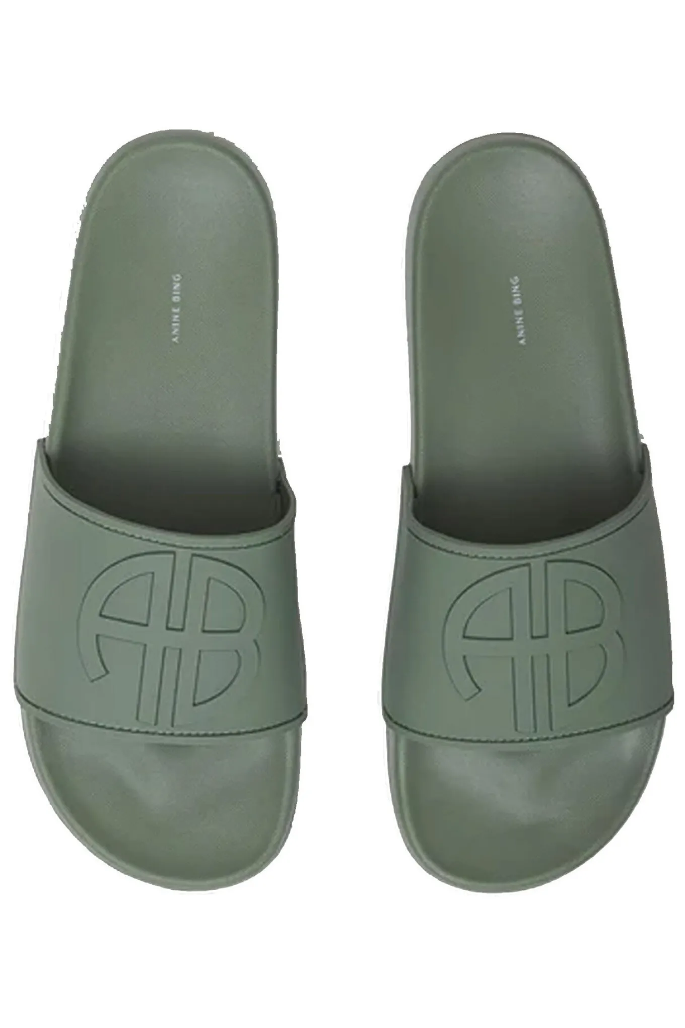 - OBS! Fjernlager. Levering kan blive forlænget med 2-3 dage, hvis varen ikke findes i vores butik lige nu.Super smarte slides fra Anine Bing med monogram over foden og et helt enkelt udtryk.
